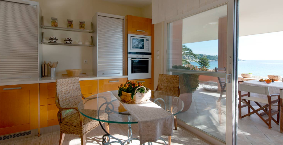 Продается вилла площадью 550 кв.м в Кавале. Из окон открывается великолепный вид на море, на горы, на лес. У объекта есть солнечные батареи для нагрева воды, камин, кондиционер, тенты, зона барбекю, отопление. Недвижимость продается с мебелью. У объекта установлена сигнализация. К недвижимости относится парковочное место, сад, гараж. На территории расположен бассейн личного пользования. Предлогаем на продажу виллу площадью 550 кв.м, в пригороде Кавалы. Вилла состоит из 3 этажей (плюс подвал и мансард). Первый этаж вмещает крытый бассейн, одну спальную комнату, гостиную с камином, кухню и одно помещение под спортивный зал и спа. Этот этаж имеет выход на сад и на закрытый гараж. Второй этаж состоит из гостиной со столовой и мрамарным камином, просторной кухни. Третий этаж распологает тремя спальными комнатами, одной хозяйской комнаты с личным санузлом и одной ванной комнаты. В подвале находится кательная. Дом также имеет мансард, который вмещает одну спальную комнату.К элегантному дому прилегает участок площадью 3.800 кв.м с красивым садом, барбекю, деревянной беседки и детских качелях. Вилла имеет прекрасный вид на море и на горы.