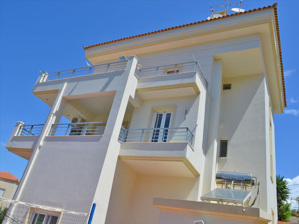 Продается 4-этажный коттедж площадью 330 кв.м в Аттике. Полуподвал состоит из 4 спальных комнат, гостиной, одной ванной комнаты. Первый этаж состоит из гостиной с кухней, одного санузла. Второй этаж состоит из одной спальной комнаты, одной ванной комнаты. Третий этаж состоит из 2 гостиных, одной душевой комнаты. Из окон открывается вид на море, на горы. У объекта есть солнечные батареи для нагрева воды, камин, кондиционер, отопление. В здании расположен лифт. У объекта установлена сигнализация. К недвижимости относится парковочное место, сад. На территории есть площадка для игры в баскетбол, футбол и волейбол. Также установлена спутниковая антенна тв и имеется бойлер для горячей воды.