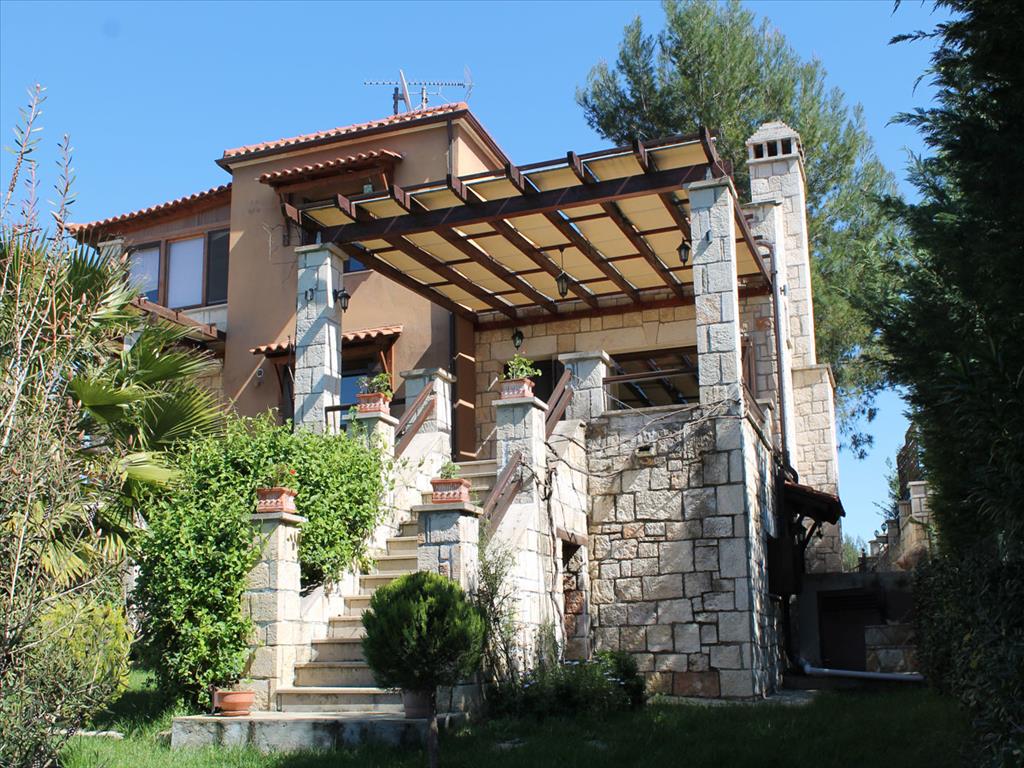 Продается 3-этажный коттедж площадью 217 кв.м на полуострове Кассандра, региона Халкидики. Полуподвал состоит из одной спальной комнаты, одной душевой комнаты. Первый этаж состоит из гостиной, одной кухни, одной душевой комнаты. Второй этаж состоит из одной спальной комнаты, одной душевой комнаты. Из окон открывается великолепный вид на лес. У объекта есть камин, отопление. Недвижимость продается с мебелью. К недвижимости относится парковочное место. На третьем этаже есть закрытая веранда. Также в доме имеется дополнительный мансардный этаж. Дом полностью меблирован, в нём установлены кондиционеры и система сигнализации. К коттеджу прилегает земельный участок площадью 750 кв.м., с которого открывается великолепный вид на лес. Имеются парковочные места на три автомобиля. Коттедж расположен всего в 700 метрах от туристического посёлка в окружении соснового леса. В посёлке развитая инфраструктура: магазины, банки, супермаркеты, таверны и летние кафе-бары.
