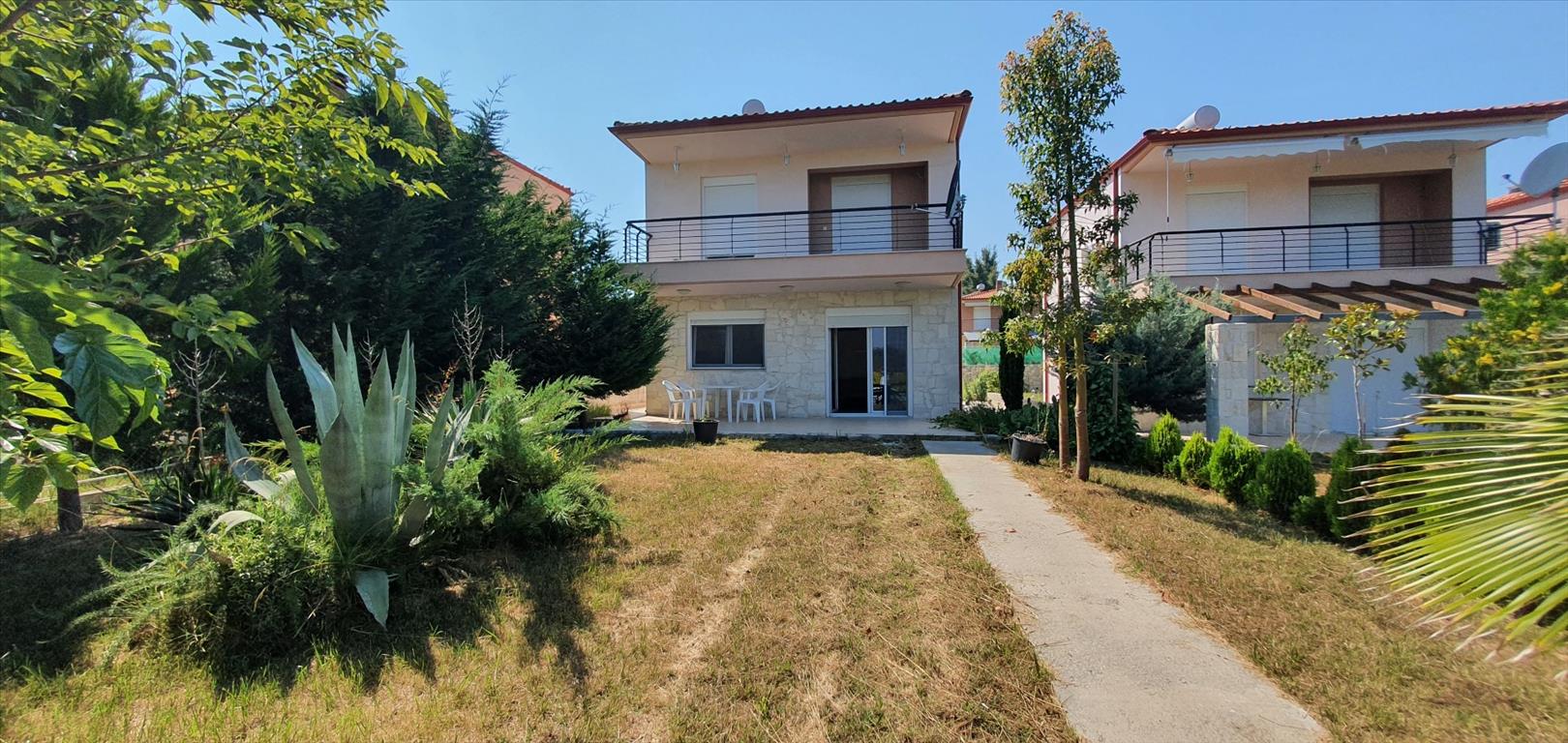 Продаются два коттеджа в живописном поселке полуострова Кассандра. Площадь коттеджа составляет 72 кв.м. Первый этаж состоит из гостиной с кухней и санузла с душевой кабиной. Второй этаж вмещает в себя две спальные комнаты и санузел с душем. К каждому коттеджу прилегает земельный участок площадью 420 кв.м, на котором имеется место для парковки двух автомобилей. Дома расположены в знаменитом элитном курорте полуострова, который знаменит своим белоснежным песчаным пляжем, кристально-чистым бирюзовым морем и невероятно свежим воздухом. Посёлок считается одним из лучших экологических курортов Греции, так как расположен в сосновом бору и максимально приспособлен для комфортного элитного отдыха.