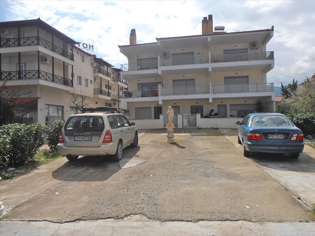 Продается квартира, расположенная на первом этаже, площадью 108 м2 в знаменитом прибрежном курорте Олимпийской Ривьеры. Квартира состоит из двух уровней. На первом расположены гостиная с кухней, две спальные комнаты и санузел с душем. По лестнице ведущей на цокольный этаж попадаешь на нижний уровень вмещающий еще две спальных комнаты. Квартира располагает своим личным двориком 50 м2, барбекю общего пользования. В 30 метрах находится марина с яхтами и рыбацкими лодками, а также множество национальных таверн и кафе. Вокруг располагаются многокилометровые золотые пляжи, неописуемая природа и вид на древний замок делают это место бесподобным.