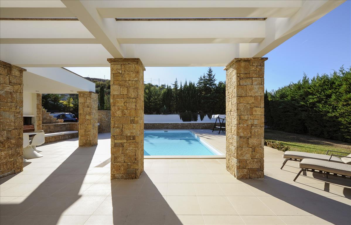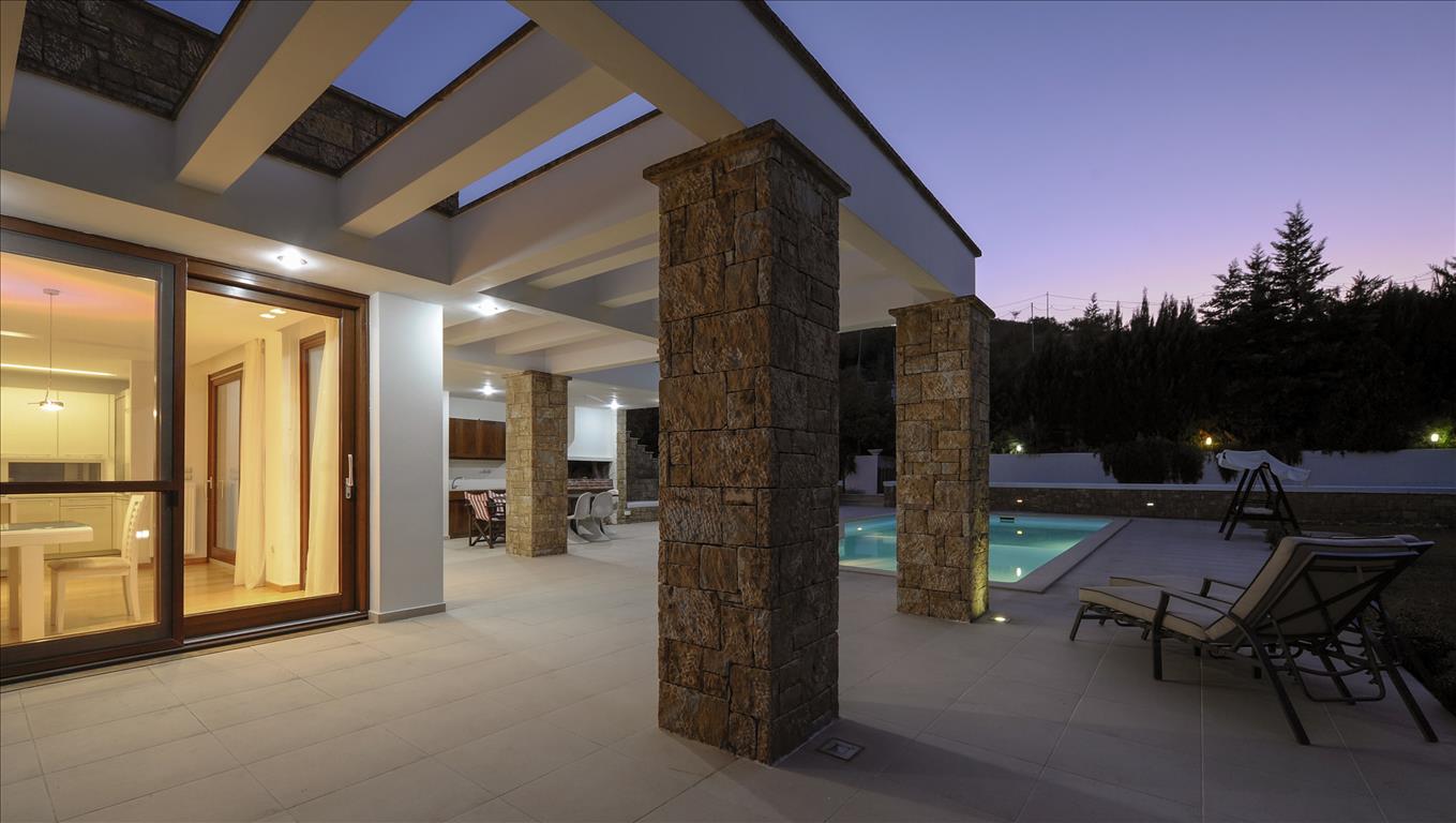 Продается 2-этажная вилла площадью 300 кв.м в пригороде города Салоники. Первый этаж состоит из 4 спальных комнат, одной ванной комнаты, одной душевой комнаты. Второй этаж состоит из одной спальной комнаты, гостиной с кухней, одной ванной комнаты, одного санузла, одной кладовой. Из окон открывается великолепный вид на море, на горы, на город. У объекта есть солнечные батареи для нагрева воды, камин, кондиционер, зона барбекю, отопление. Недвижимость продается с мебелью. У объекта установлена сигнализация. К недвижимости относится парковочное место, гараж. На территории расположен бассейн личного пользования.