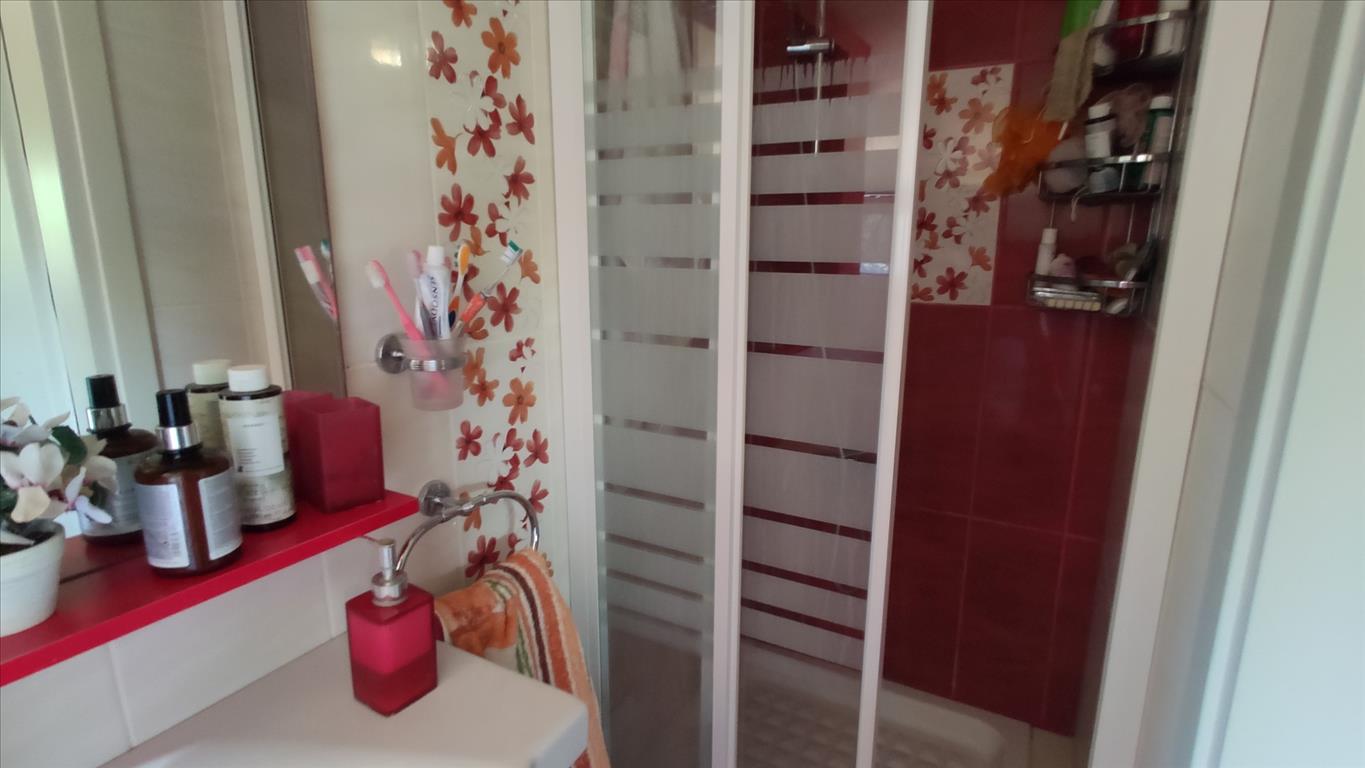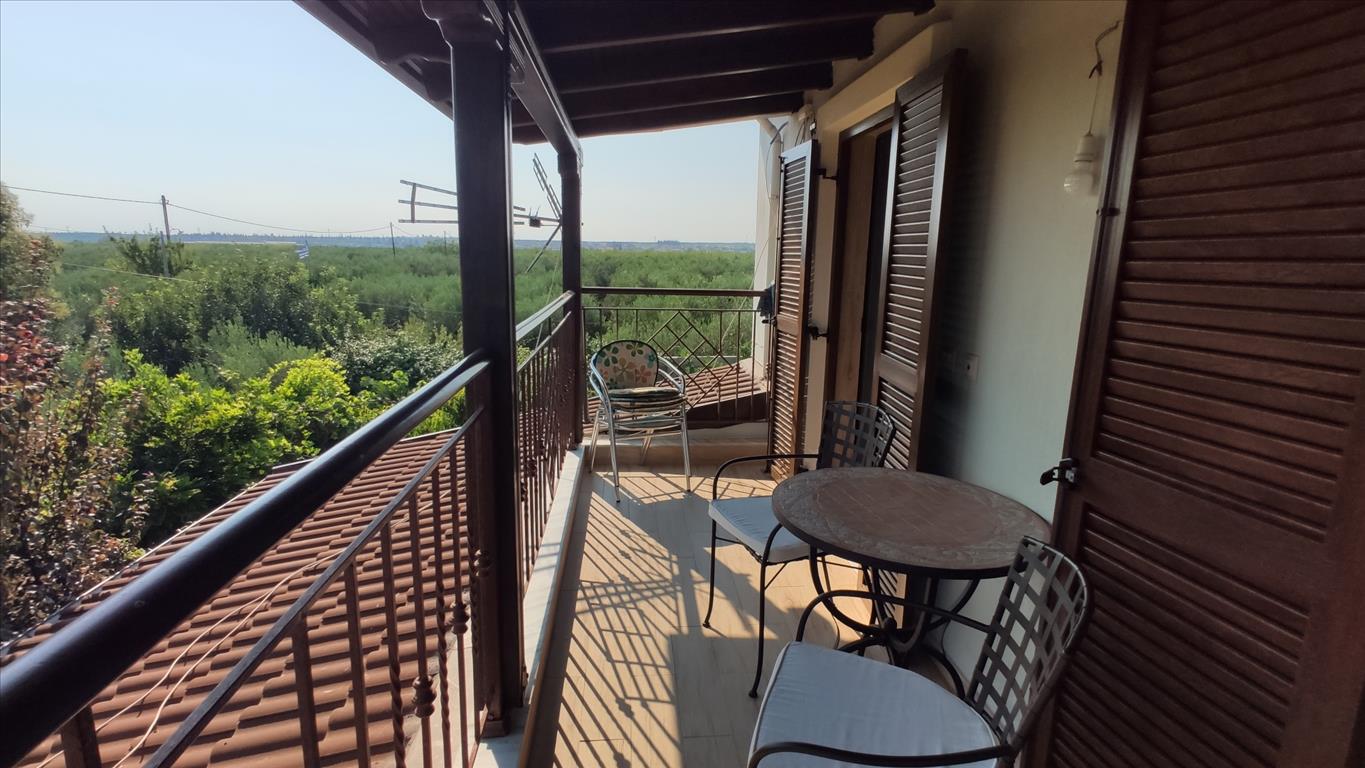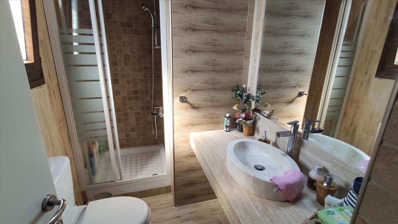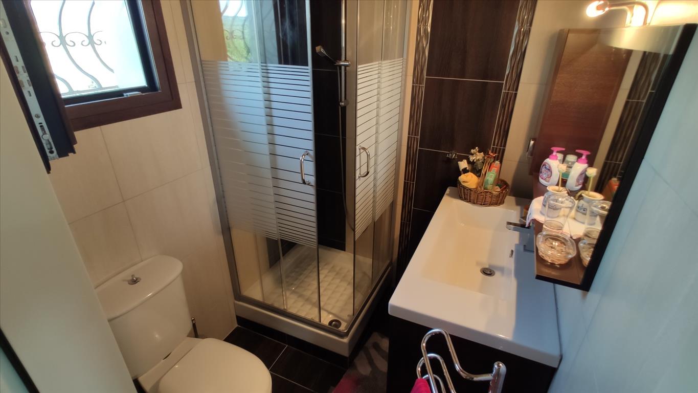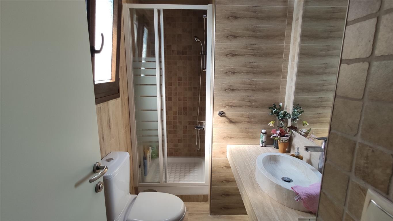 Продается 2-этажный коттедж площадью 100 кв.м в Халкидиках. Первый этаж состоит из одной спальной комнаты, гостиной с кухней, одной душевой комнаты. Второй этаж состоит из 2 спальных комнат, 2 душевых комнат, одной кладовой. У объекта есть солнечные батареи для нагрева воды, кондиционер. Недвижимость продается с мебелью. К недвижимости относится парковочное место, сад.