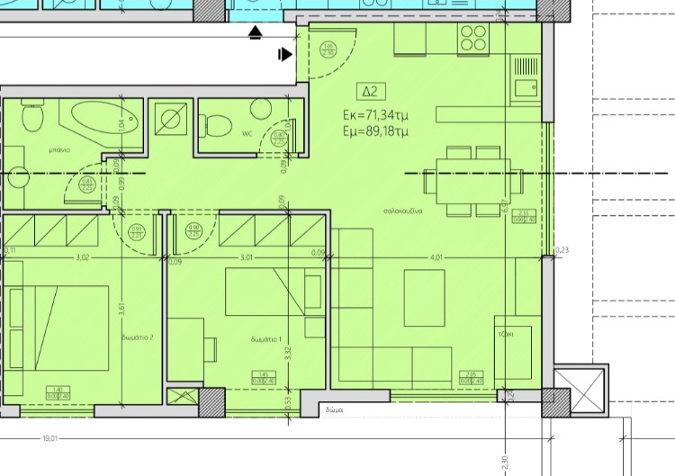 Продается квартира площадью 89 кв.м в пригороде города Салоники на стадии строительства. Квартира расположена на четвертом этаже и состоит из 2 спальных комнат, гостиной с кухней, одной ванной комнаты, одного санузла. Квартира имеет угловое расположение. У объекта есть камин, отопление. Чистая площадь составляет 71 кв.м.Квартира расположена в районе Переа.