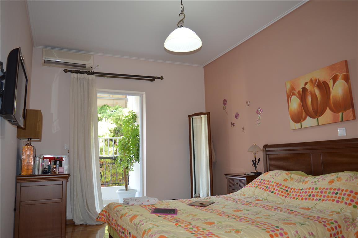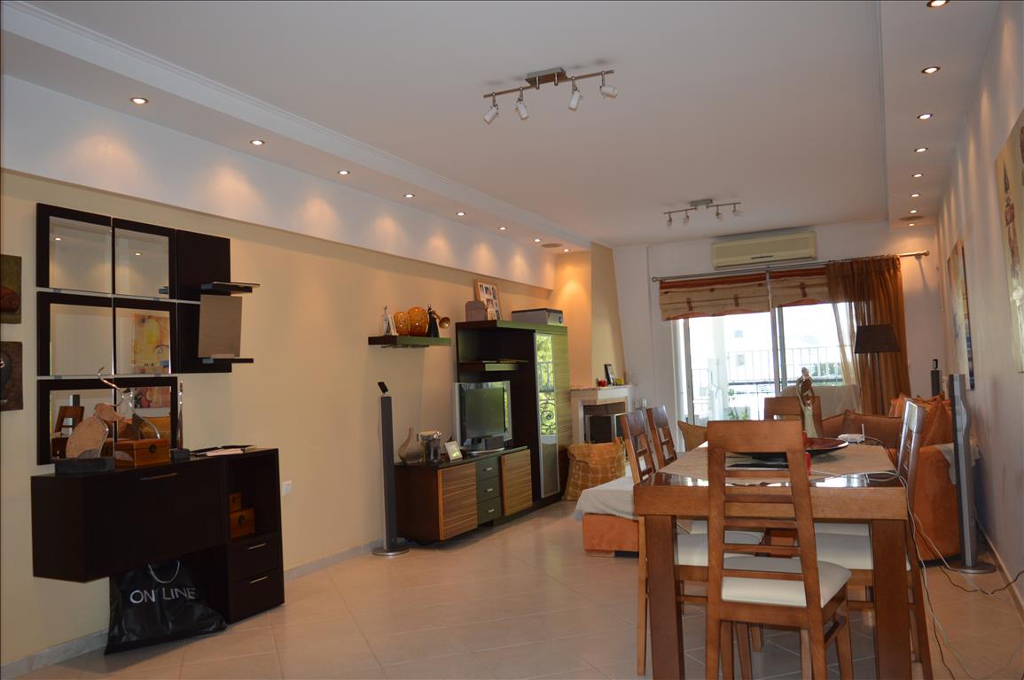 Продается квартира площадью 114 кв.м в Афинах. Квартира расположена на третьем этаже и состоит из 3 спальных комнат, гостиной с кухней, 2 ванных комнат. Из окон открывается вид на город. У объекта есть камин, кондиционер, тенты, отопление. В здании расположен лифт. У объекта установлена сигнализация. К недвижимости относится парковочное место, сад, гараж. Квартира расположена в районе Палео Фалиро