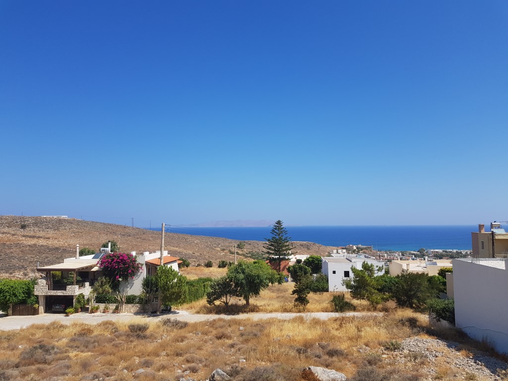 Продается земельный участок площадью 500 кв.м. на острове Крит. На территории подведена вода, подведено электричество. Имеет вид на море, на горы, на город.