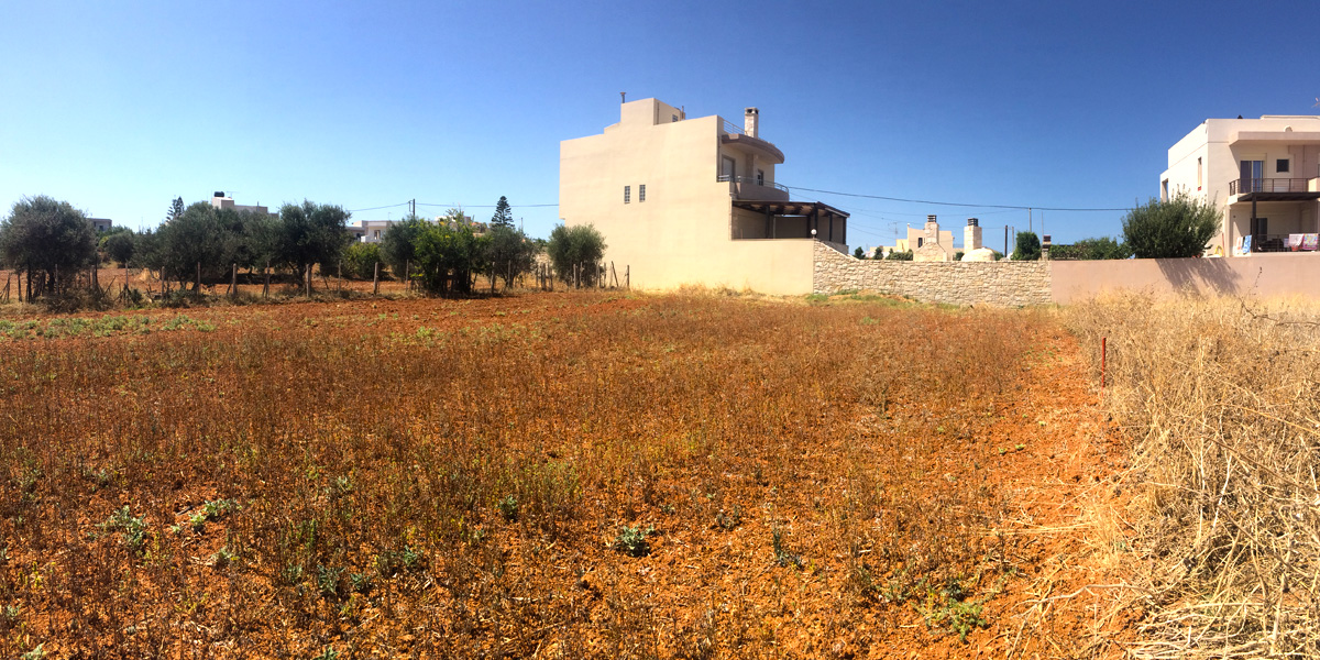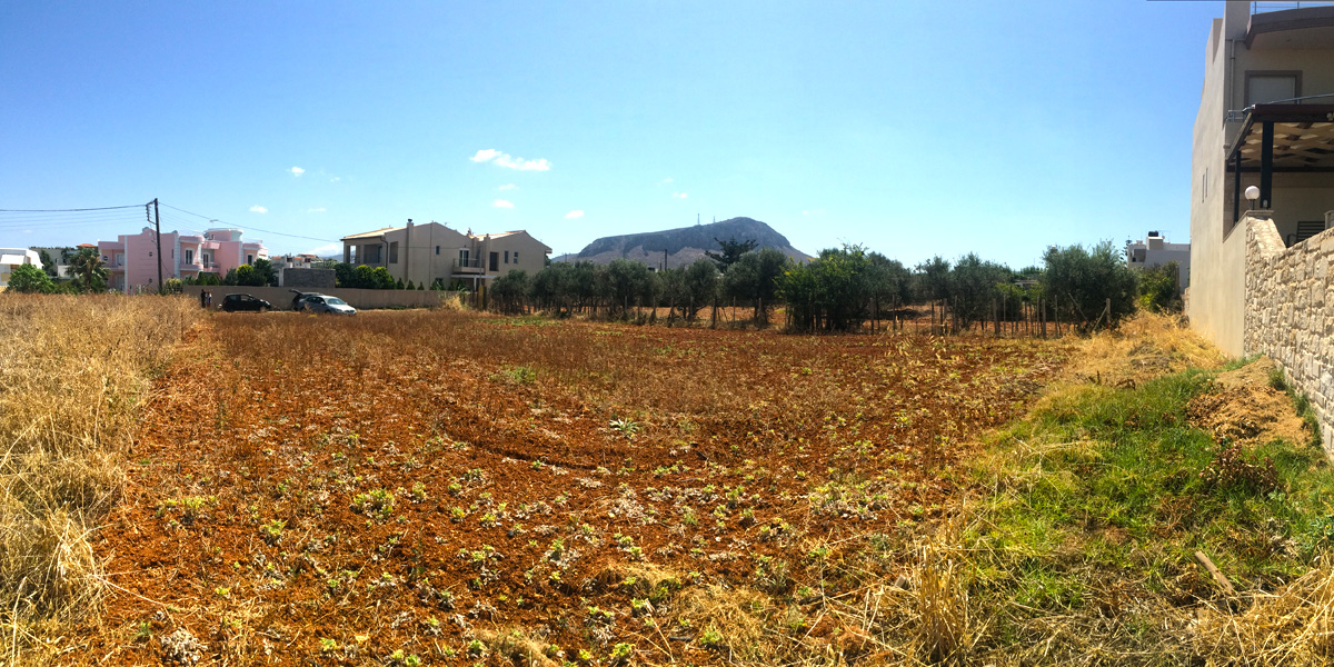 Продается земельный участок площадью 450 кв.м. на острове Крит. На территории подведена вода, подведено электричество, и существует разрешение на строительство, с возможностью построить 150 кв.м.. .