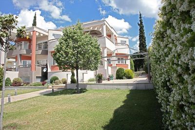Имеется также: камин, кондиционер, тенты на балконах, сад, сигнализация, интернет, спутниковое телевидение, бассейн, барбекю, алюминиевые оконные рамы, гараж, парковочное место.