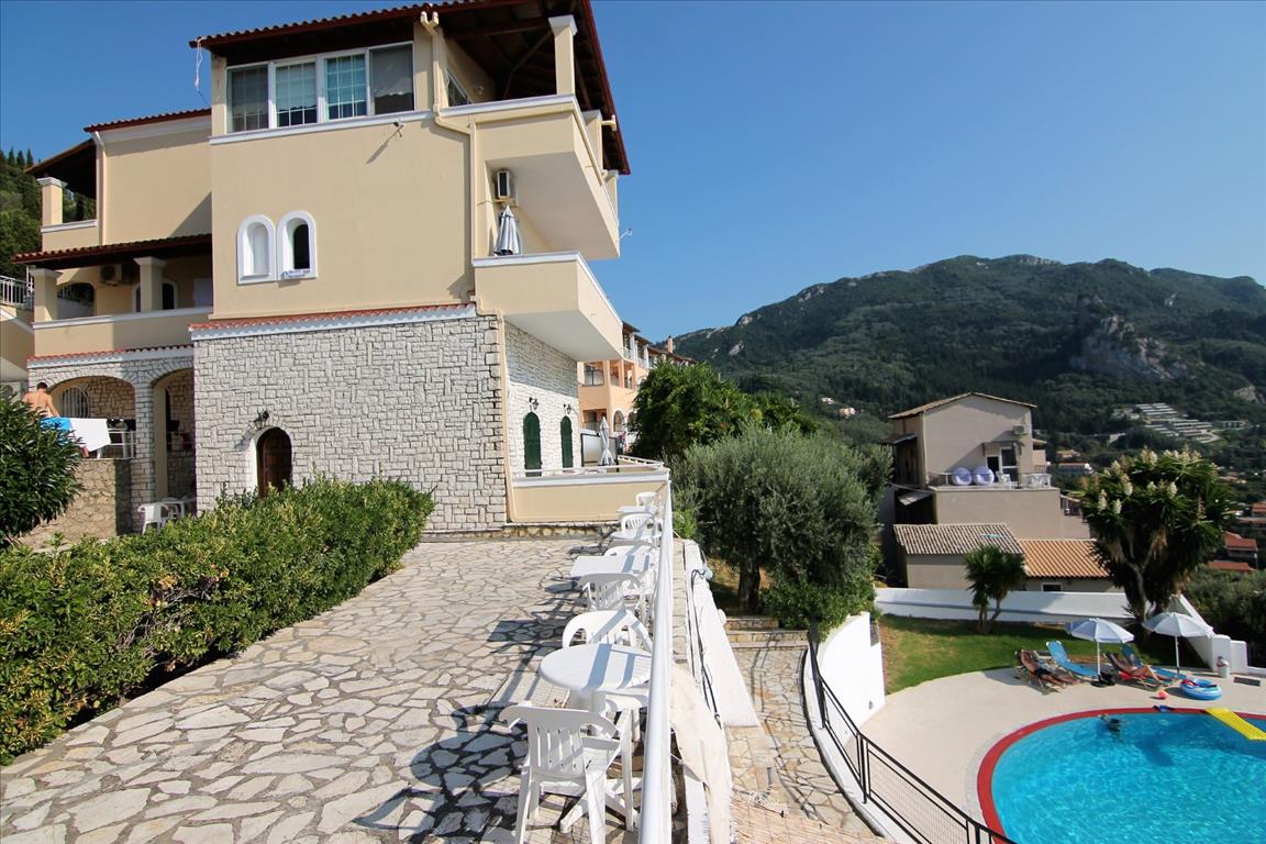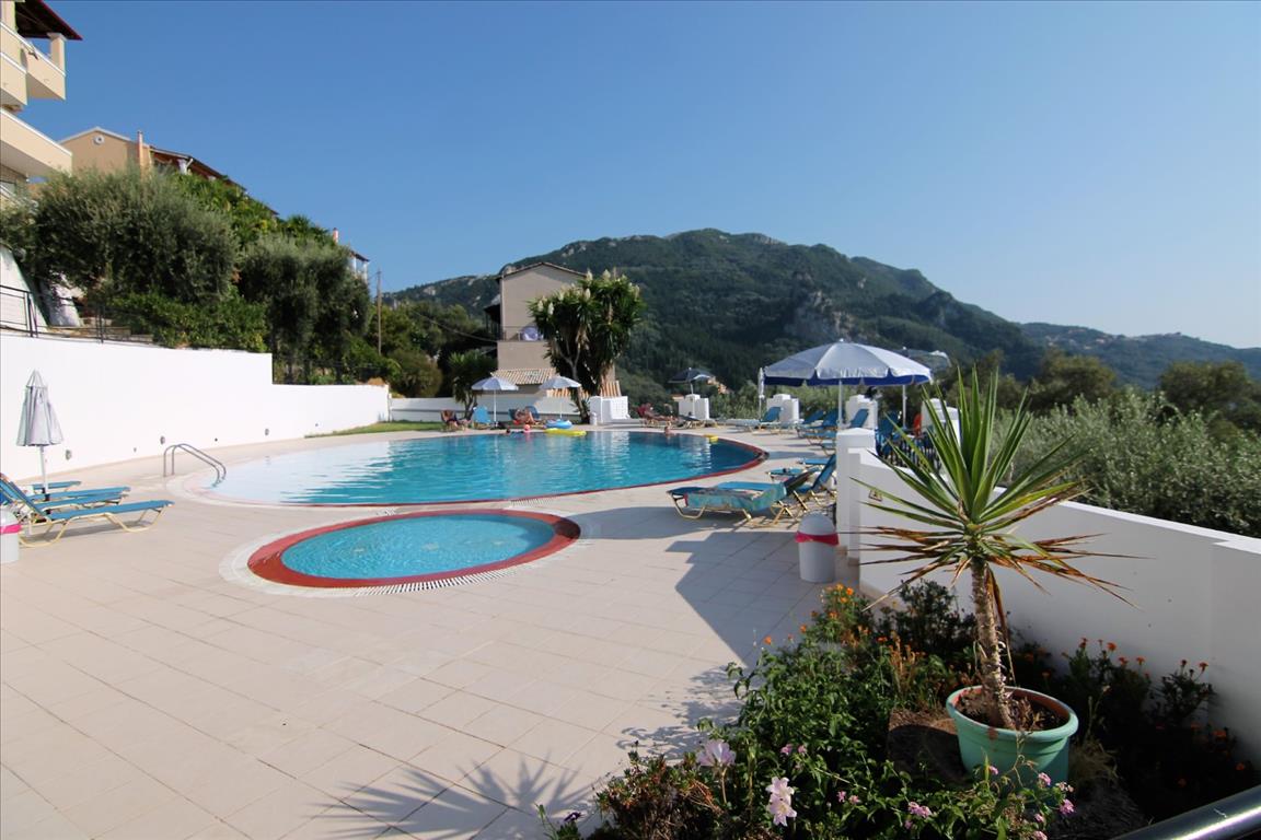 В одном из самых красивых мест острова Корфу, в деревне под названием Айос Гордиос, на продажу выставлен мини-отель общей площадью 420 кв.м., расположенный на земельном участке 2070 кв.м. Само здание состоит из четырех этажей: 1-й этаж состоит из двух двухкомнатных квартир 60-ти и 70-ти кв.м. (две спальни, гостиная, кухня и уборная) и одной однокомнатной квартиры (1 спальня, гостиная, кухня и уборная). 2-й этаж состоит из двух двухкомнатных квартир 60-ти и 70-ти кв.м. (две спальни, гостиная, кухня и уборная) и одной однокомнатной квартиры (1 спальня, гостиная, кухня и уборная). 3-й этаж состоит из одной большой квартиры площадью 120 кв.м. ( 2 спальни, гостиная, кухня, столовая и две уборные). Возле бассейна есть отдельная комната для обслуживающего персонала. Имеет великолепный вид на море, на горы, на лес. Также есть мебель, солнечные батареи для нагрева воды, камин, кондиционер, бассейн, парковочное место, сад, газон, отопление, подсобное помещение.