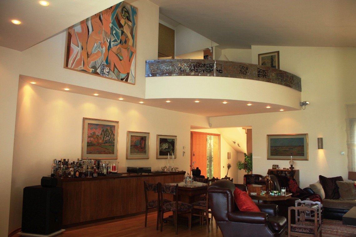 Продается 3-этажная вилла площадью 600 кв.м в Салониках. Полуподвал состоит из 2 спальных комнат, гостиной с кухней, одной ванной комнаты, 2 санузлов, одной кладовой. Первый этаж состоит из 2 спальных комнат, гостиной, одной кухни, одной ванной комнаты, одной душевой комнаты, 2 санузлов, одной кладовой. Второй этаж состоит из одной спальной комнаты, одной ванной комнаты, одной душевой комнаты, одного санузла, одной кладовой. Вилла имеет угловое расположение. Из окон открывается вид на горы. У объекта есть солнечные батареи для нагрева воды, камин, кондиционер, зона барбекю, отопление. В здании расположен лифт. У объекта установлена сигнализация. К недвижимости относится парковочное место, сад, гараж. Также на цокольном этаже имеется винный погреб и бар.