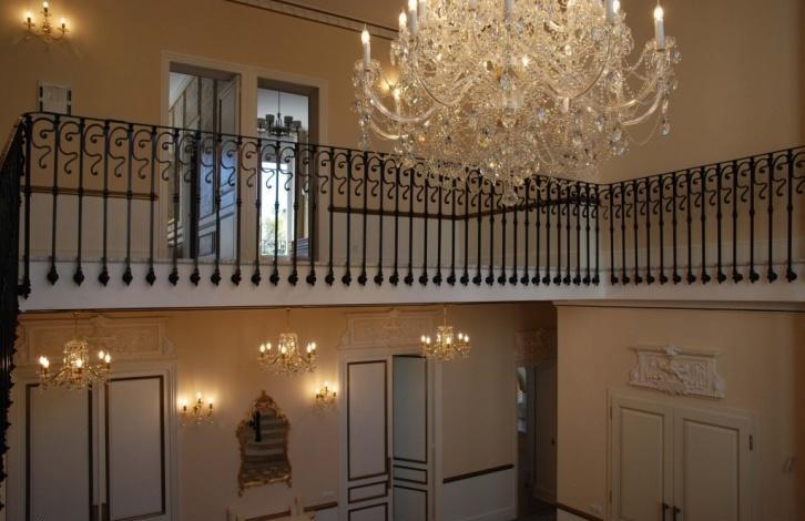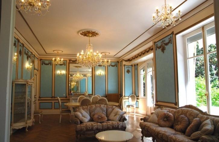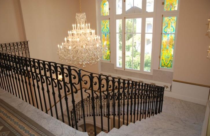 Сохранены и реставрированы старинные камины, лепнина и паркет конца 19го века. Монументальная лестница и огромные витражные окна являются значимым украшением виллы.