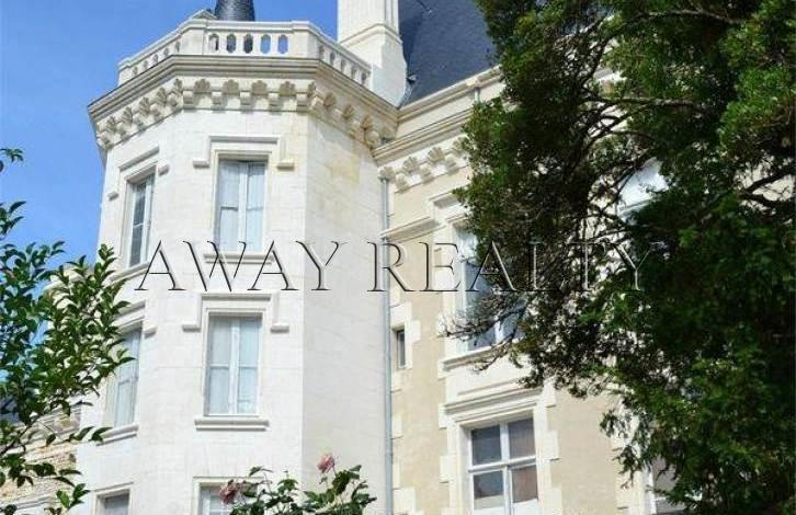 Роскошный особняк в неоготическом стиле был построен в 19 веке. Здание было построено на месте имения 14 века, дом пропитан историей и сохраняет многие первоначальные черты. Жилая площадь составляет более 3,000 кв.м. В настоящее время проект отеля в шато рассчитан на 43 номера, из которых 7 люксов, 20-24 роскошных номера и остальные стандартные номера. Ресторан вместимостью 200 человек, есть 2 конференц-зала, 4 террасы. Площадь земли составляет приблизительно 2,5 га. Из шато открываются великолепные виды на долину реки Шаранта. На территории имеются дополнительные постройки, они включают в себя дом охраны, голубятню и другие небольшие здания. Собственность в настоящее время отремонтирована на очень высоком уровне, сохранив при этом историческую атмосферу и подлинность. До инфраструктуры на машине.