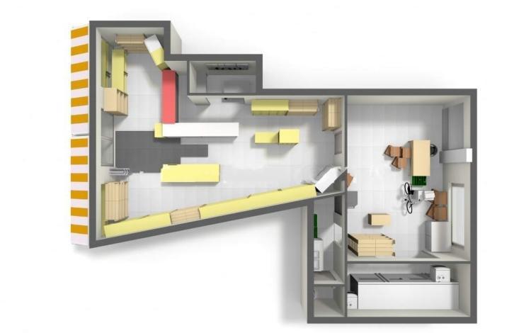 В данный момент в помещении находится продуктовый магазин, который можно оставить либо переоборудовать в кафе с возможностью размещения столиков как внутри, так и на улице; в пекарню, салон красоты, массажный салон или СПА-салон.