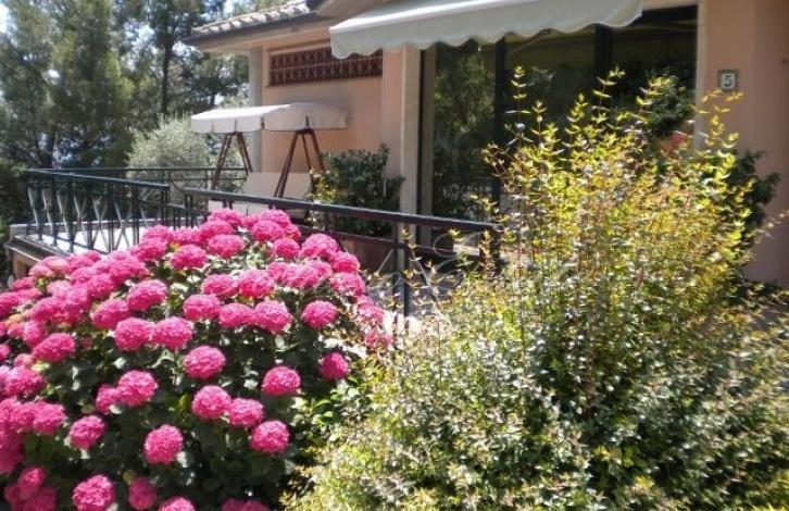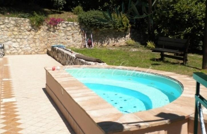 Вилла окружена очень красивым и ухоженным садом площадью 6000 кв.м, где растут вековые деревья, фруктовые деревья и разнообразные цветы. Работает автоматическая система полива. Рядом с домом имеется бассейн 7х4м с панорамным видом и гидромассажная ванна на 6 человек. И там, и там вода подогревается независимым отопительным котлом.