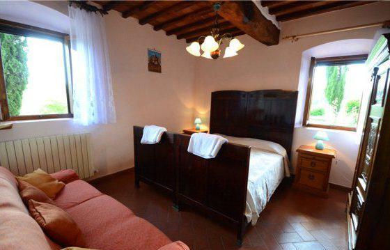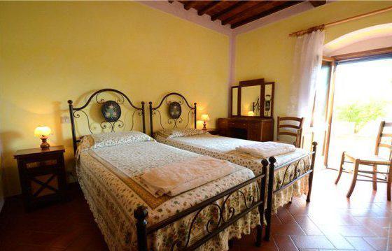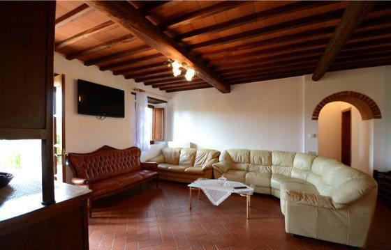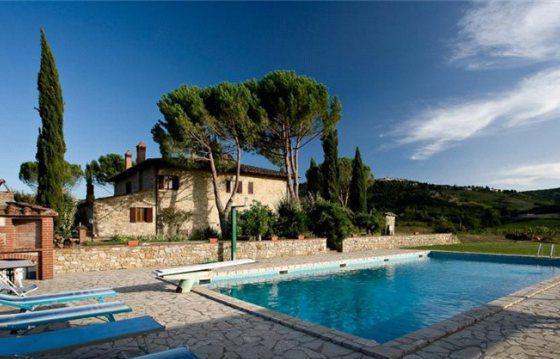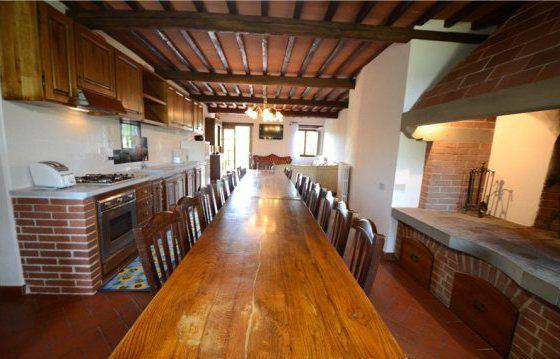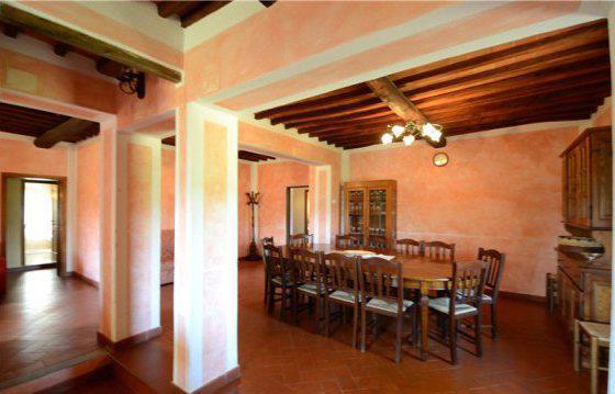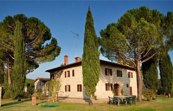 This traditional renovated farmhouse is located between Radda in Chianti and Volpaia, surrounded by vineyards. The property consists of a 4305 sq. ft. main house and a 1120 sq. ft. independent guesthouse. The very bright and spacious main house consists of several living and dining areas, 9 bedrooms and 9 bathrooms. The separate guest house has a living/dining area, 3 bedrooms and 4 bathrooms. This unique property is surrounded by a 4. 94 acre garden with lawns, a panoramic pool (7 x 14 m) and terrace. Underground garage, electric gate, private wells, access to municipality water.