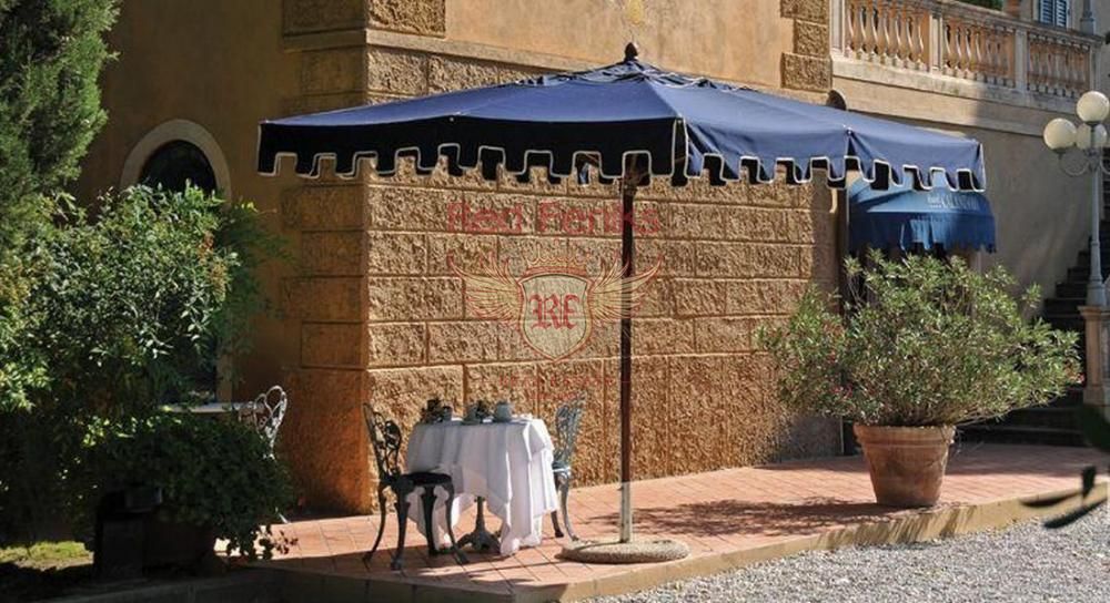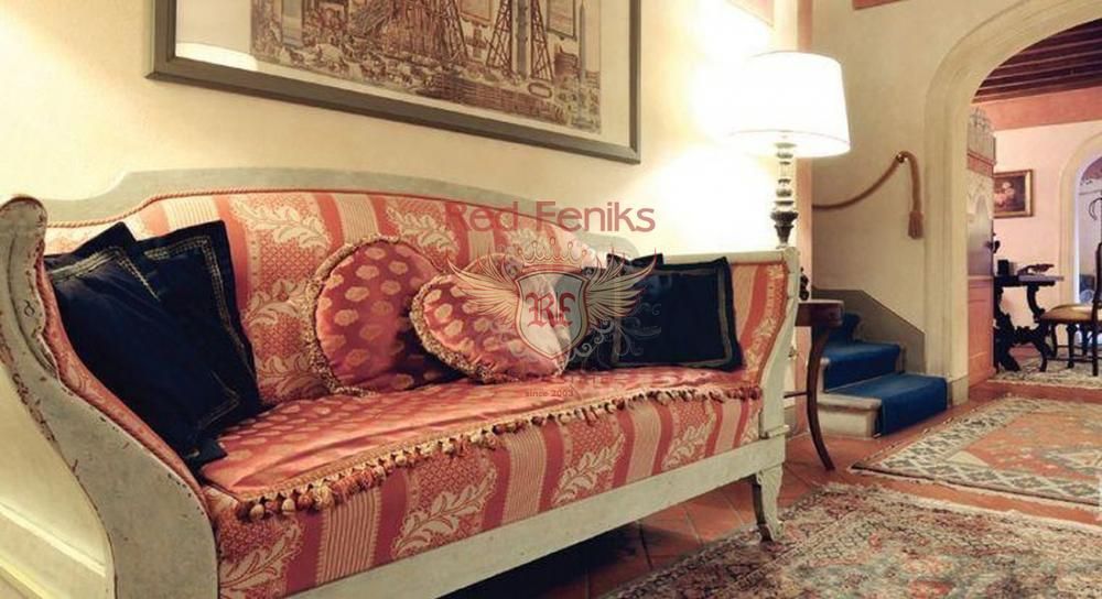Интерьеры виллы отличаются тщательно подобранными половыми и потолочными покрытиями высокого качества, а также уютной меблировкой. Отель на продажу, построенный на месте старинного поестья насчитывает 67 комнат (сьюты и маленькие сьюты), которые дополнены всеми современными удобствами . Гостница имеет несколько залов для проведения конгрессов.
