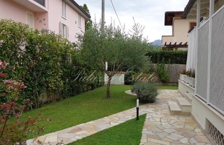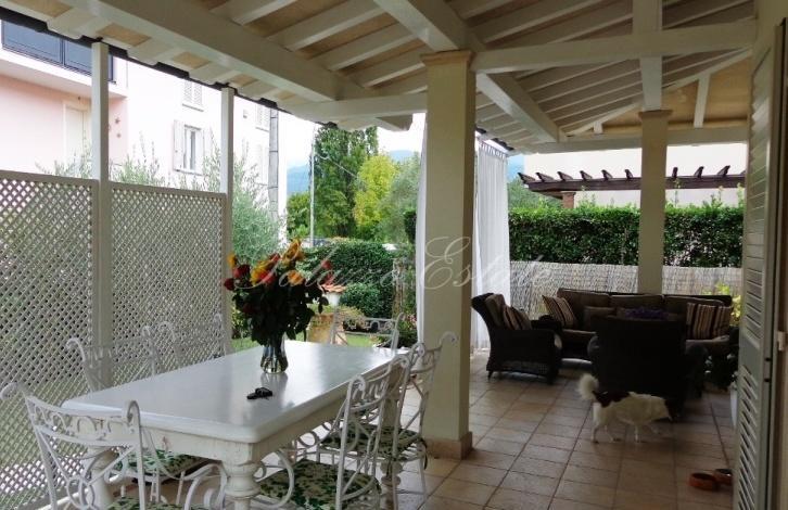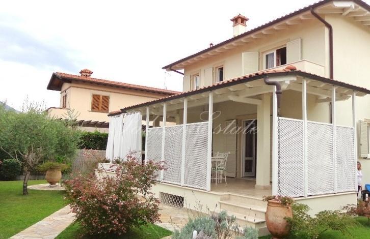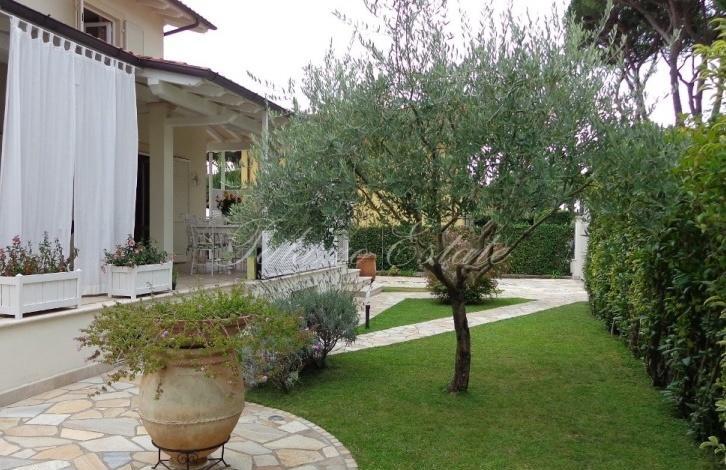 Современная вилла, выстроенная и отделанная в классическом сдержанном стиле, расположена примерно в 1км от моря. На участке есть удобное место для парковки.