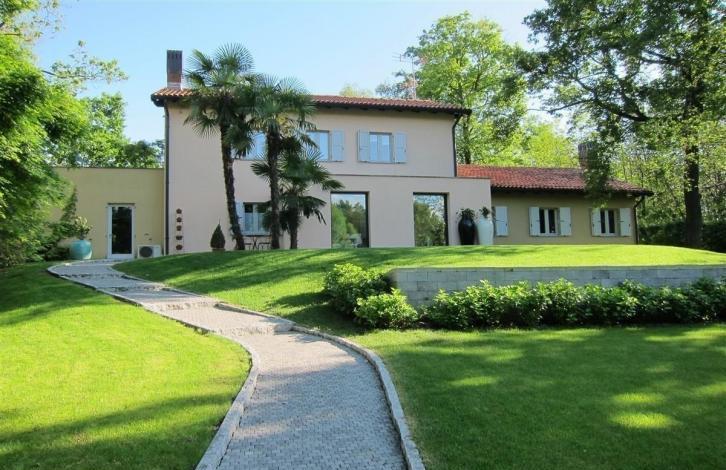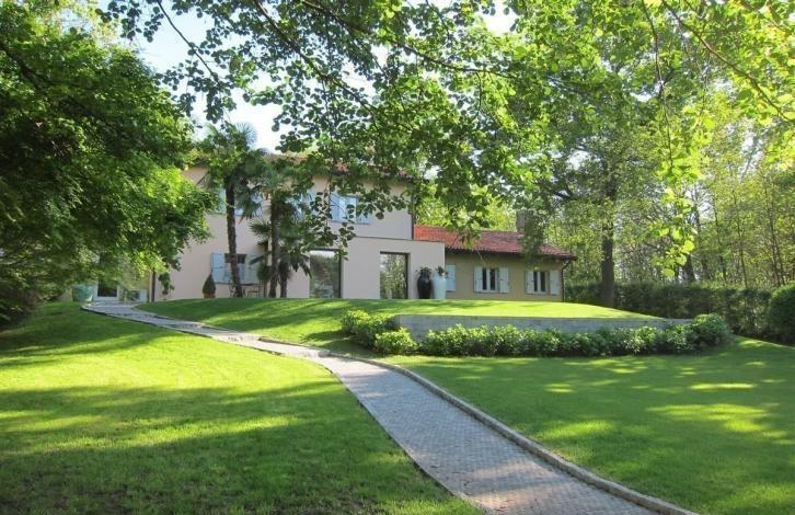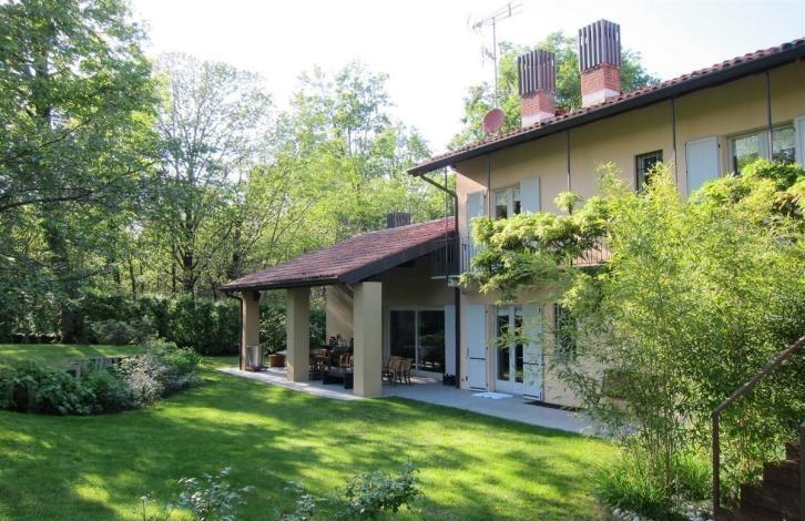Рядом с гольфклубом Castelconturbia, традиционный коттедж с участком 5000 м2. Дом располагается на двух равнинных участках. Обстановка коттеджа современного дизайна.