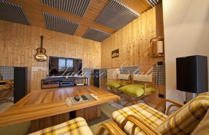 На первом этаже расположена большая таверна с камином, кухня, столовая и бар, два подсобных помещения, кабинет/спальня, ванная комната, прачечная и котельная, веранда. На втором этаже находится прихожая, гостиная с камином и большими французскими окнами ведущими на террасу. Красивая лестница из дерева и кованого железа ведёт на мезонинный этаж где расположены кухня, прихожая и две спальни с ванными комнатами.