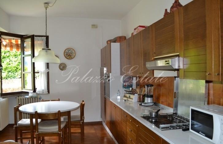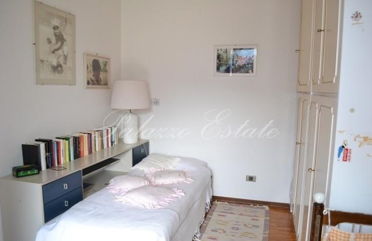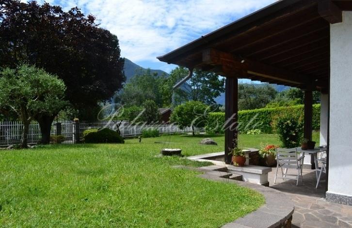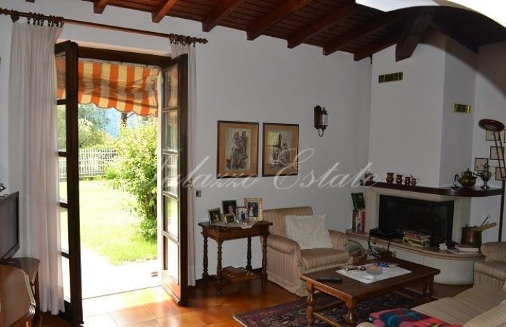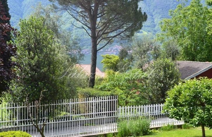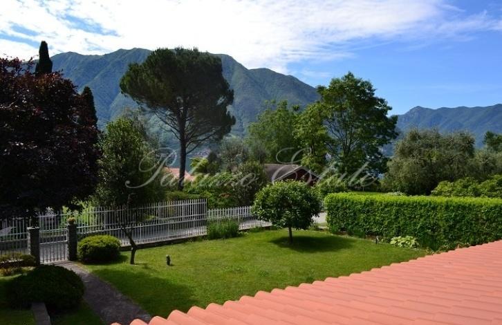 В хорошем жилом районе Ленно, в двух шагах от центра города и от озера на продажу выставлена красивая вилла с участком 800 кв.м. Частичный вид на озеро.
