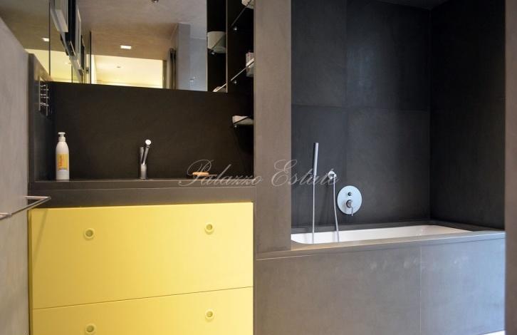 Апартаменты выполнены в минималистском и англосаксонском стиле. Отличительным элементом можно считать просторное открытое пространство площадью около 100 кв.м, которое залито светом, благодаря большим раздвижным окнам-дверям. Из этой гостиной можно пройти в столовую и современную кухню. Зона ночи состоит из двух спален с собственными санузлами и общей гардеробной. Кроме того, имеется служебная зона, которая включает в себя служебную спальню, санузел и постирочную.