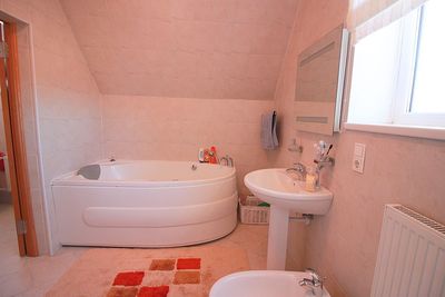 Первый этаж: холл, объединённая с кухней гостиная, кабинет или гостевая комната, комплекс вспомогательных хозяйственных помещений, релакс-зона с сауной и душевой, гардеробная, WC. Имеются две террасы, с выходами на них из гостиной и кабинета (комнаты).Второй этаж: четыре изолированные спальни, два WC. Имеется балкон, с выходами на него из двух спален.