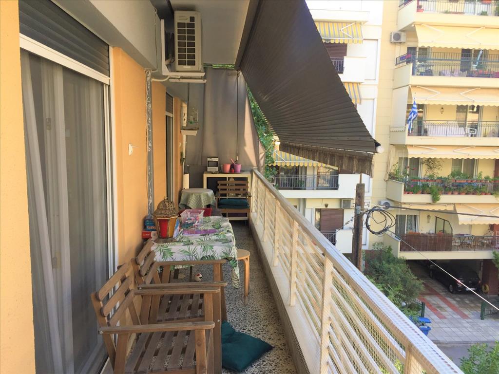 Продается квартира площадью 90 кв.м в Салониках. Квартира расположена на третьем этаже и состоит из 2 спальных комнат, гостиной с кухней, одной ванной комнаты, одного офиса. Квартира имеет угловое расположение. У объекта есть кондиционер, тенты, отопление. В здании расположен лифт. Квартира расположена в районе Каламаря.