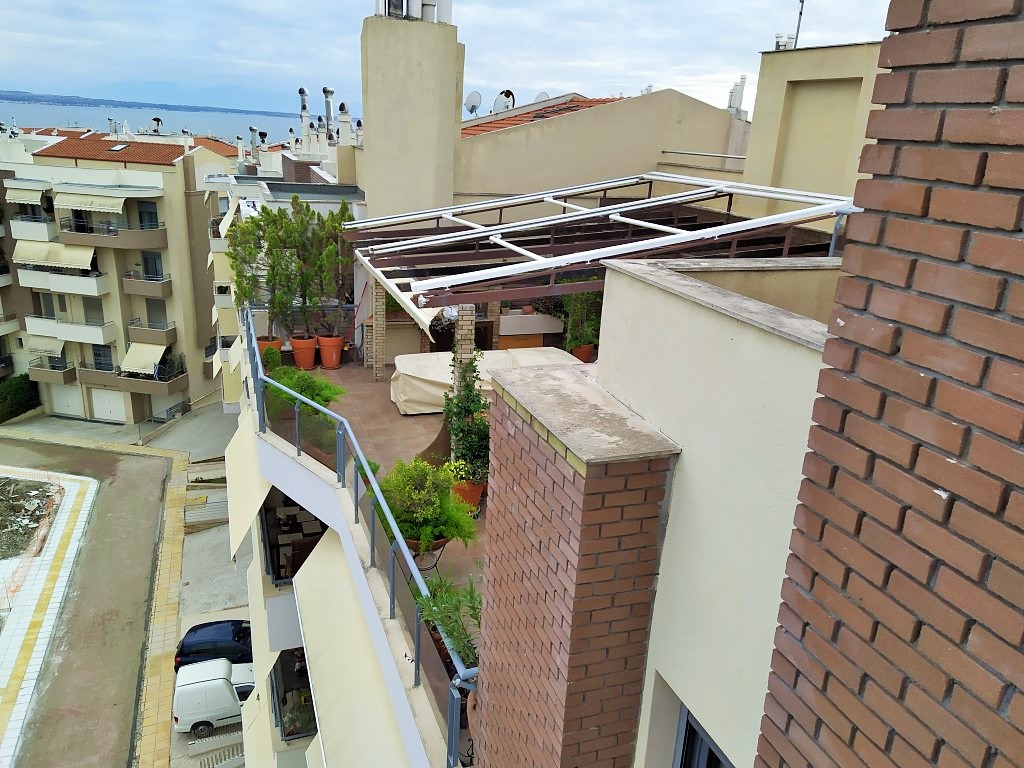 Продается дуплекс площадью 310 кв.м в Салониках. Дуплекс расположен на 2 уровнях. Пятый этаж состоит из 3 спальных комнат, гостиной, одной кухни, одной ванной комнаты, одной душевой комнаты. Чердак состоит из 2 спальных комнат, гостиной, одной кухни, одной ванной комнаты, 2 кладовых. Двухуровневая квартира имеет угловое расположение. Из окон открывается великолепный вид на море, на горы, на город. У объекта есть камин, кондиционер, тенты, зона барбекю, отопление. В здании расположен лифт. У объекта установлена сигнализация. К недвижимости относится парковочное место, гараж. Квартира расположена в районе Каламаря.