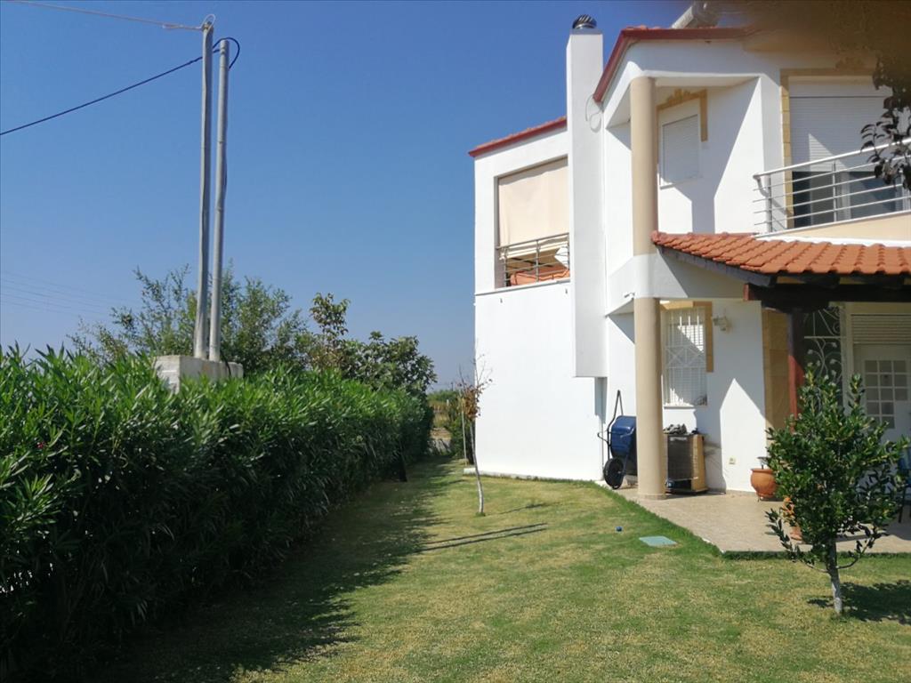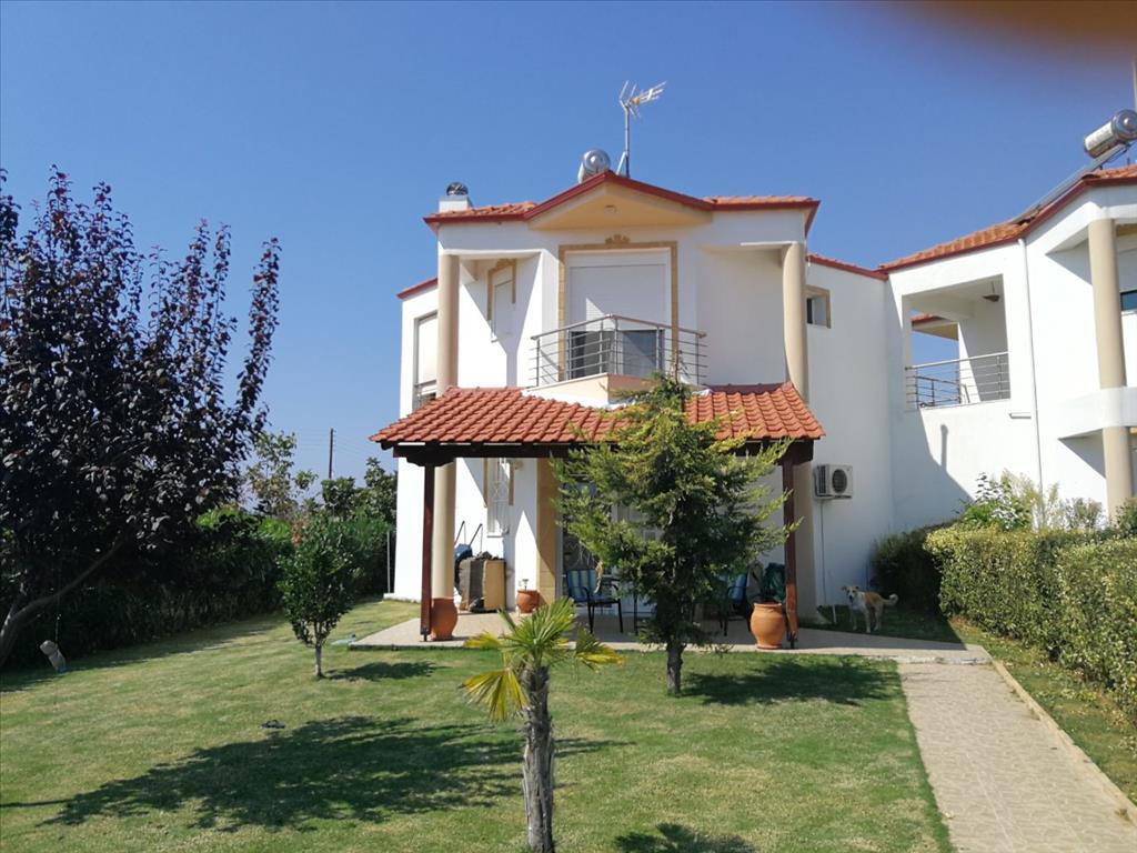Продается 2-этажный коттедж площадью 100 кв.м в Халкидиках. Первый этаж состоит из гостиной с кухней, одного санузла, одной кладовой. Второй этаж состоит из 2 спальных комнат, одной душевой комнаты. Из окон открывается вид на море. У объекта есть солнечные батареи для нагрева воды, камин, кондиционер, тенты. Недвижимость продается с мебелью. У объекта установлена сигнализация. К недвижимости относится парковочное место, сад.