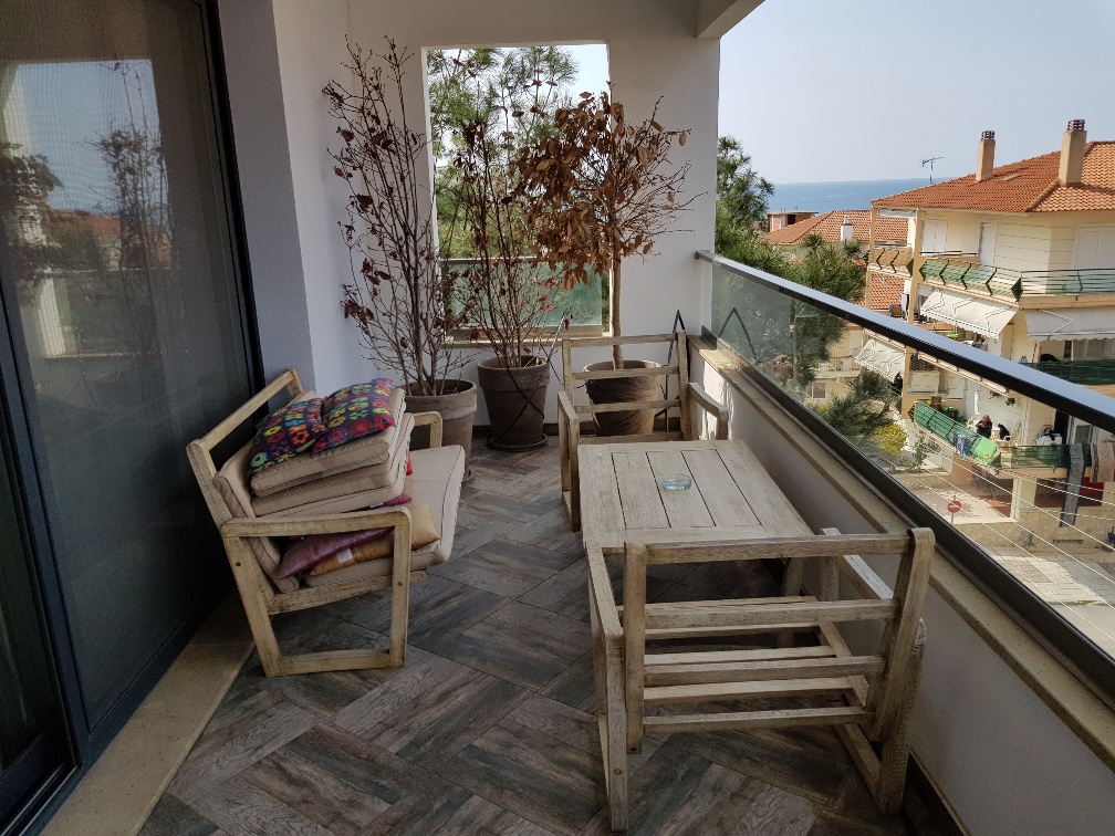 Продается квартира площадью 84 кв.м в Халкидиках. Квартира расположена на четвертом этаже и состоит из 2 спальных комнат, гостиной с кухней, 2 душевых комнат, одной кладовой. Квартира имеет угловое расположение. Из окон открывается вид на море. У объекта есть камин, кондиционер, зона барбекю, отопление. Недвижимость продается с мебелью. В здании расположен лифт. К недвижимости относится парковочное место.