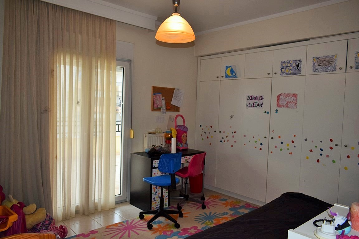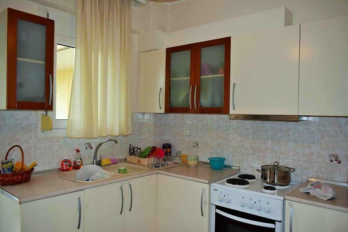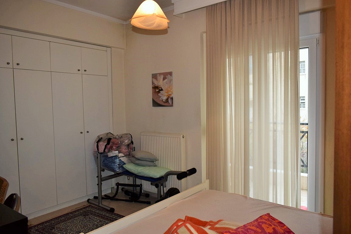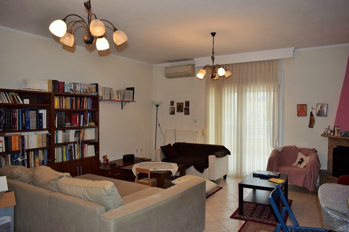 Продается квартира площадью 97 кв.м в пригороде города Салоники. Квартира расположена на втором этаже и состоит из 2 спальных комнат, гостиной, одной кухни, одной ванной комнаты, одного санузла, одной кладовой. Квартира имеет угловое расположение. У объекта есть камин, кондиционер, тенты, отопление. Недвижимость продается с мебелью. В здании расположен лифт. К недвижимости относится парковочное место.