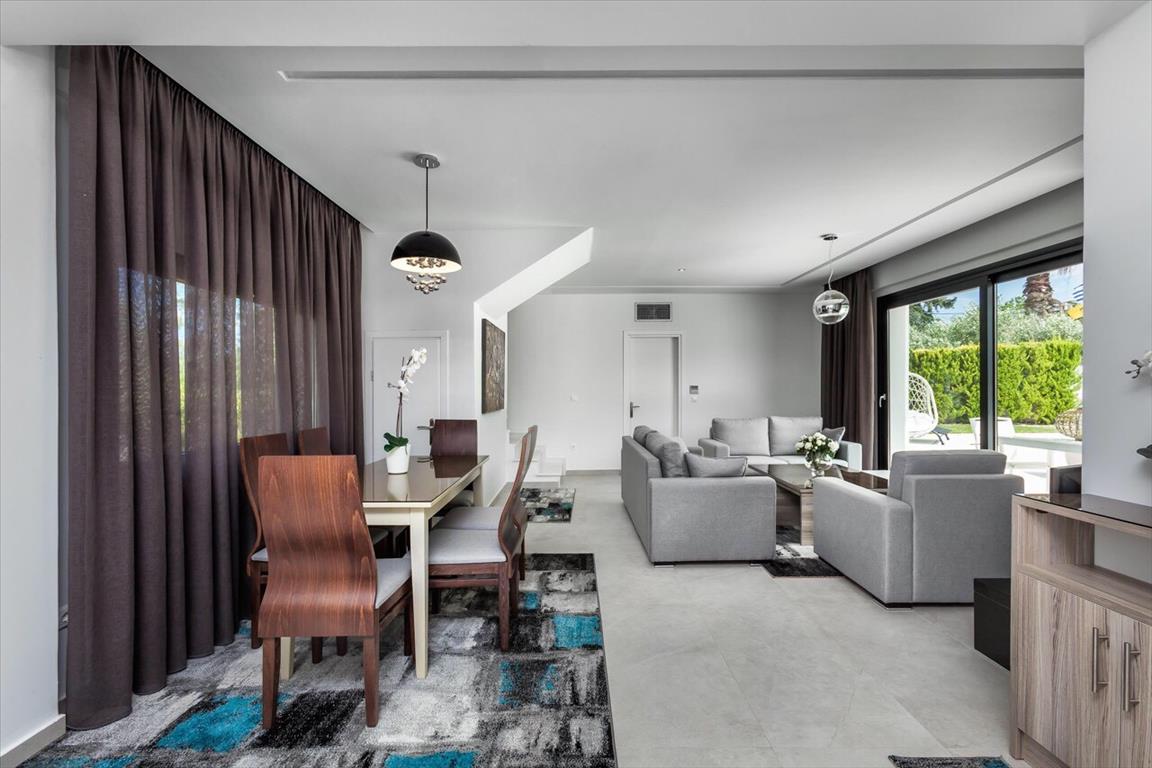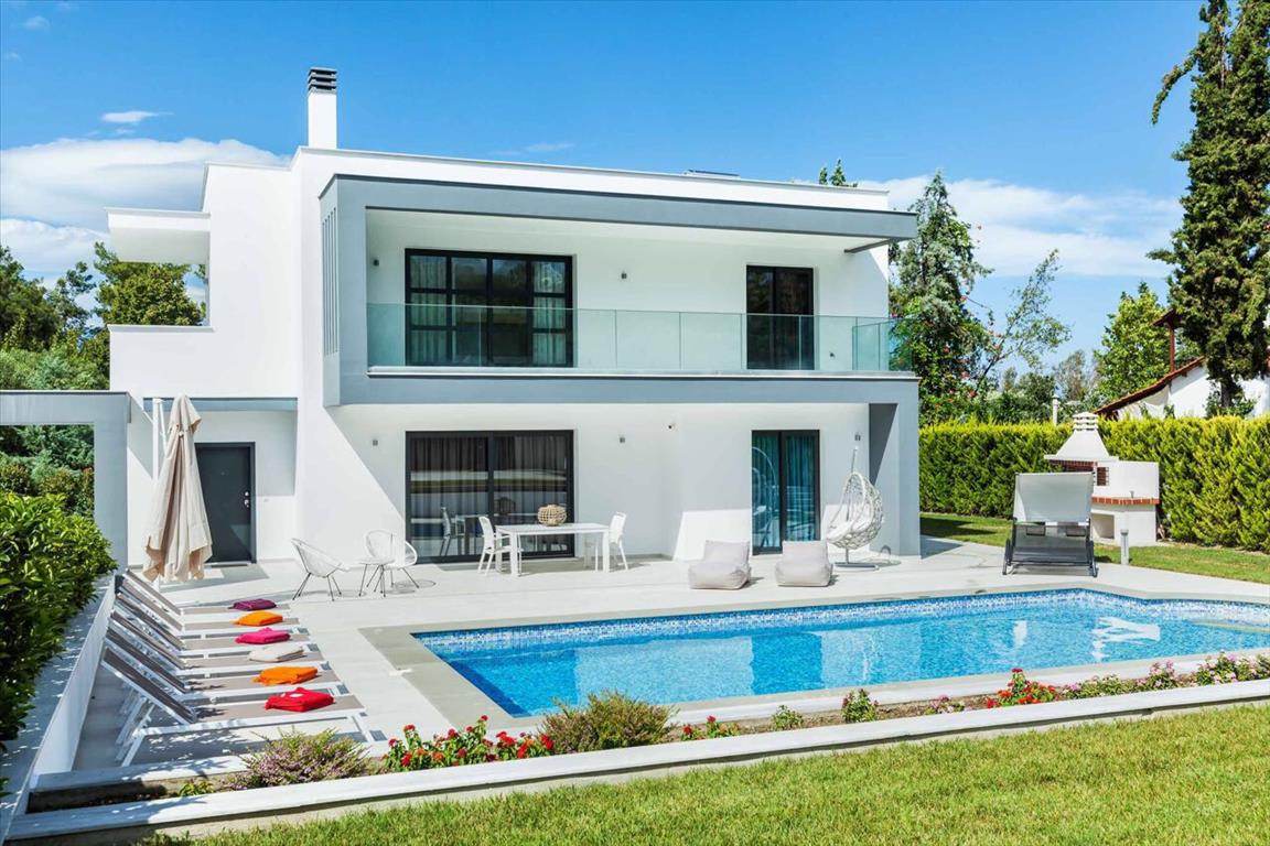 Продается 2-этажная вилла площадью 164 кв.м на полуострове Кассандра, региона Халкидики. Первый этаж состоит из одной спальной комнаты, гостиной с кухней, одной ванной комнаты, одной кладовой. Второй этаж состоит из 3 спальных комнат, 2 ванных комнат. Вилла имеет угловое расположение. Из окон открывается великолепный вид на лес. У объекта есть солнечные батареи для нагрева воды, камин, кондиционер, зона барбекю, отопление. Недвижимость продается с мебелью. У объекта установлена сигнализация. К недвижимости относится парковочное место. На территории расположен бассейн личного пользования.