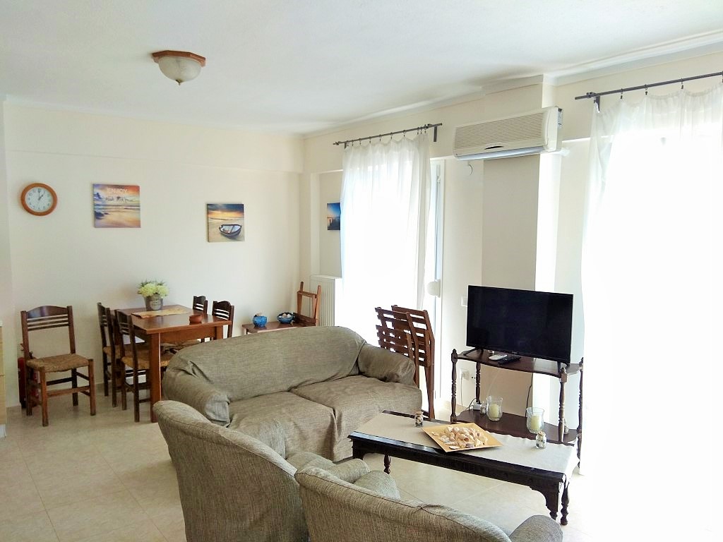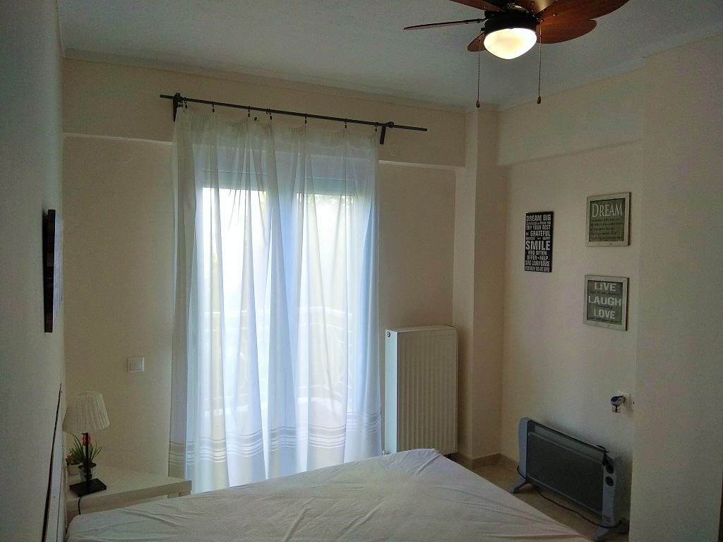 Продается квартира площадью 64 кв.м в пригороде города Салоники. Квартира расположена на первом этаже и состоит из одной спальной комнаты, гостиной с кухней, одной ванной комнаты. Из окон открывается вид на горы. У объекта есть кондиционер. Недвижимость продается с мебелью. К недвижимости относится парковочное место, сад.