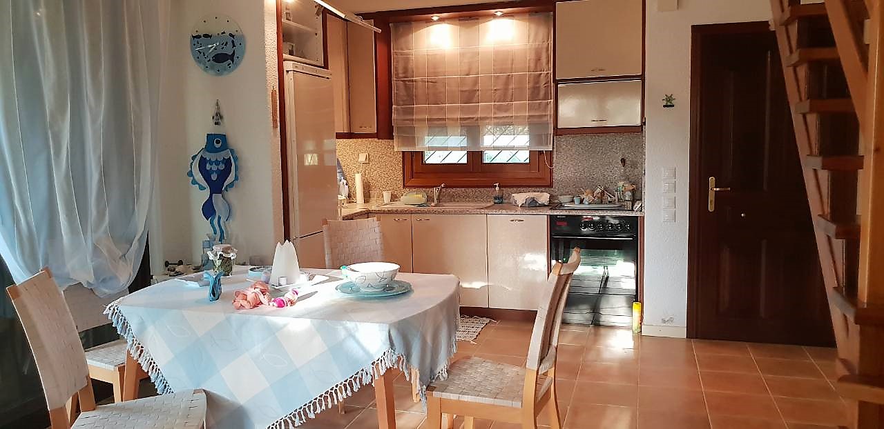 Продается 2-этажный коттедж площадью 60 кв.м на полуострове Кассандра, региона Халкидики. Первый этаж состоит из одной спальной комнаты, гостиной с кухней, одной душевой комнаты. Второй этаж состоит из одной спальной комнаты. Коттедж имеет угловое расположение. У объекта есть камин, зона барбекю, отопление. Недвижимость продается с мебелью. К недвижимости относится парковочное место, сад. На территории расположен бассейн личного пользования.