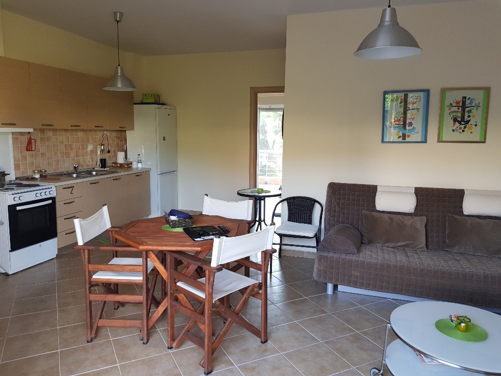 Продается квартира площадью 60 кв.м на полуострове Кассандра, региона Халкидики. Квартира расположена на втором этаже и состоит из 2 спальных комнат, гостиной с кухней, одной душевой комнаты. Из окон открывается вид на море, на горы, на лес. Недвижимость продается с мебелью. К недвижимости относится парковочное место.