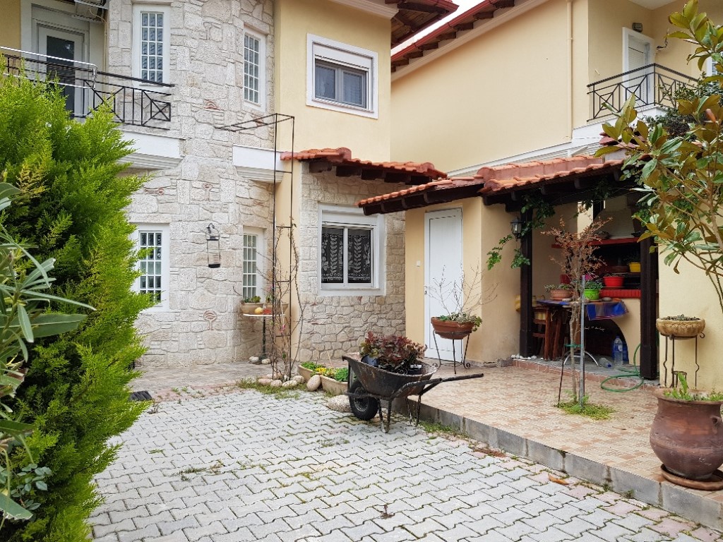 Продается таунхаус площадью 115 кв.м на полуострове Кассандра, региона Халкидики. Таyнхаус расположен на 3 уровнях. Полуподвал состоит из одной кладовой. Первый этаж состоит из гостиной с кухней, одной душевой комнаты. Второй этаж состоит из 3 спальных комнат, одной душевой комнаты. Таунхаус имеет угловое расположение. Из окон открывается вид на море, на горы, на лес. У объекта есть камин, кондиционер, тенты, зона барбекю, отопление. К недвижимости относится парковочное место, сад. На территории расположен бассейн личного пользования.