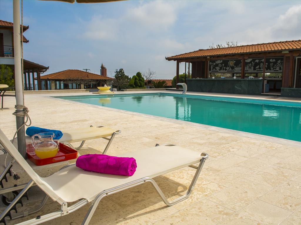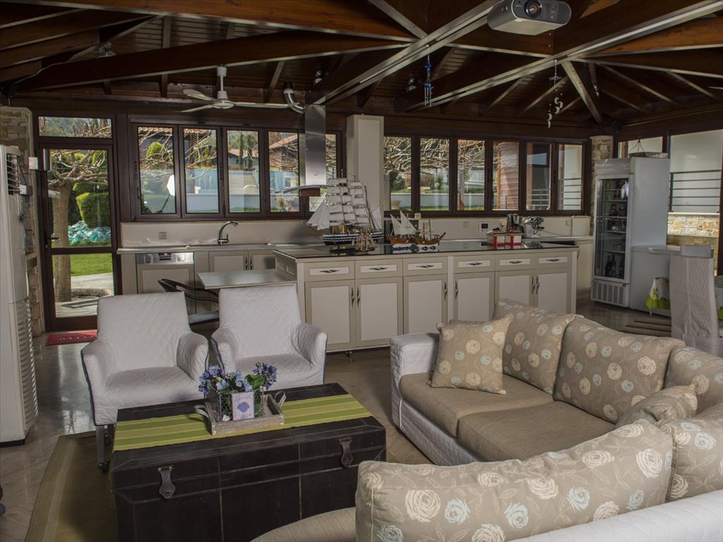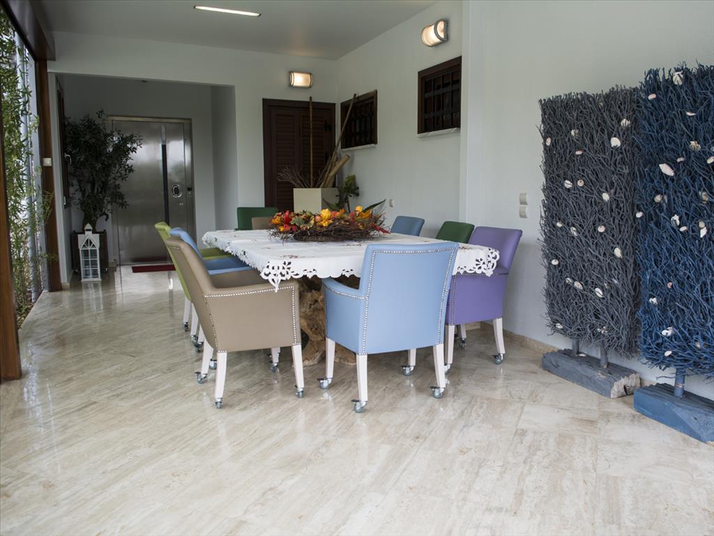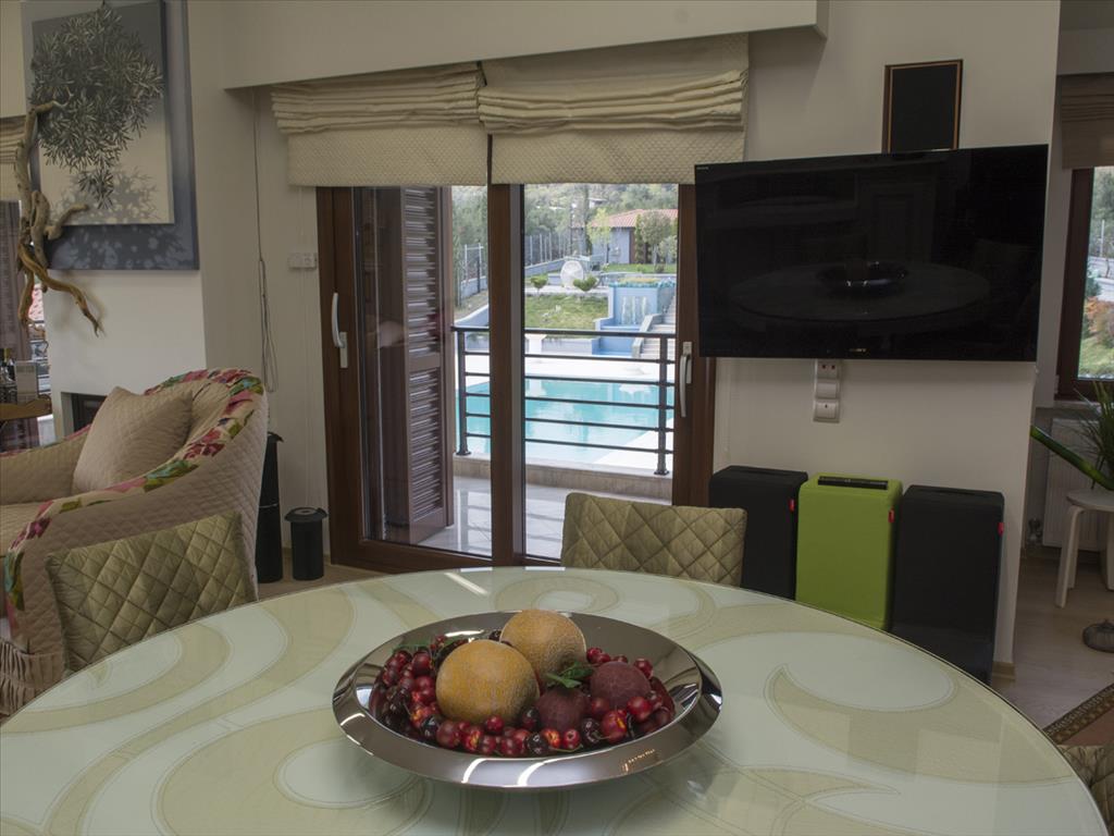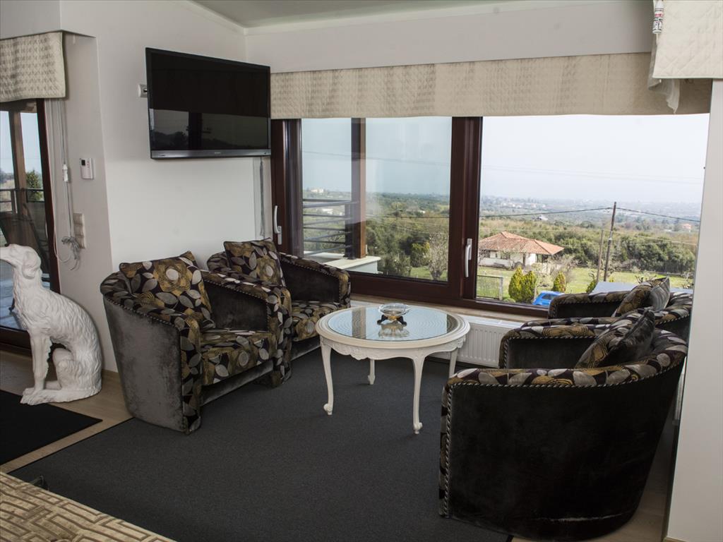 Продается 3-этажная вилла площадью 624 кв.м на Олимпийской Ривьере. Полуподвал состоит из 2 кладовых. Первый этаж состоит из 3 спальных комнат, гостиной, одной кухни, одной ванной комнаты, одной душевой комнаты, одного санузла. Второй этаж состоит из одной спальной комнаты, гостиной, одной кухни, одной ванной комнаты, одной душевой комнаты, одной кладовой. Из окон открывается великолепный вид на море, на горы, на город, на лес. У объекта есть солнечные батареи для нагрева воды, камин, кондиционер, тенты, зона барбекю, отопление. Недвижимость продается с мебелью. В здании расположен лифт. У объекта установлена сигнализация. К недвижимости относится парковочное место, сад, гараж. На территории расположен бассейн личного пользования. Великолепная вилла расположена у подножия легендарного Олимпа и окружена лесным массивом. С виллы открывается изумительный панорамный вид на Эгейское море. Вилла также владеет: Имеются два гостевых дома, бассеин с подогревом, бар, финская сауна, автоматический полив территории, полная автономия воды и электричесттва, складские помещения, великолепный сад, система сигнализации и видеонаблюдения, на территории расположена частная церковь.