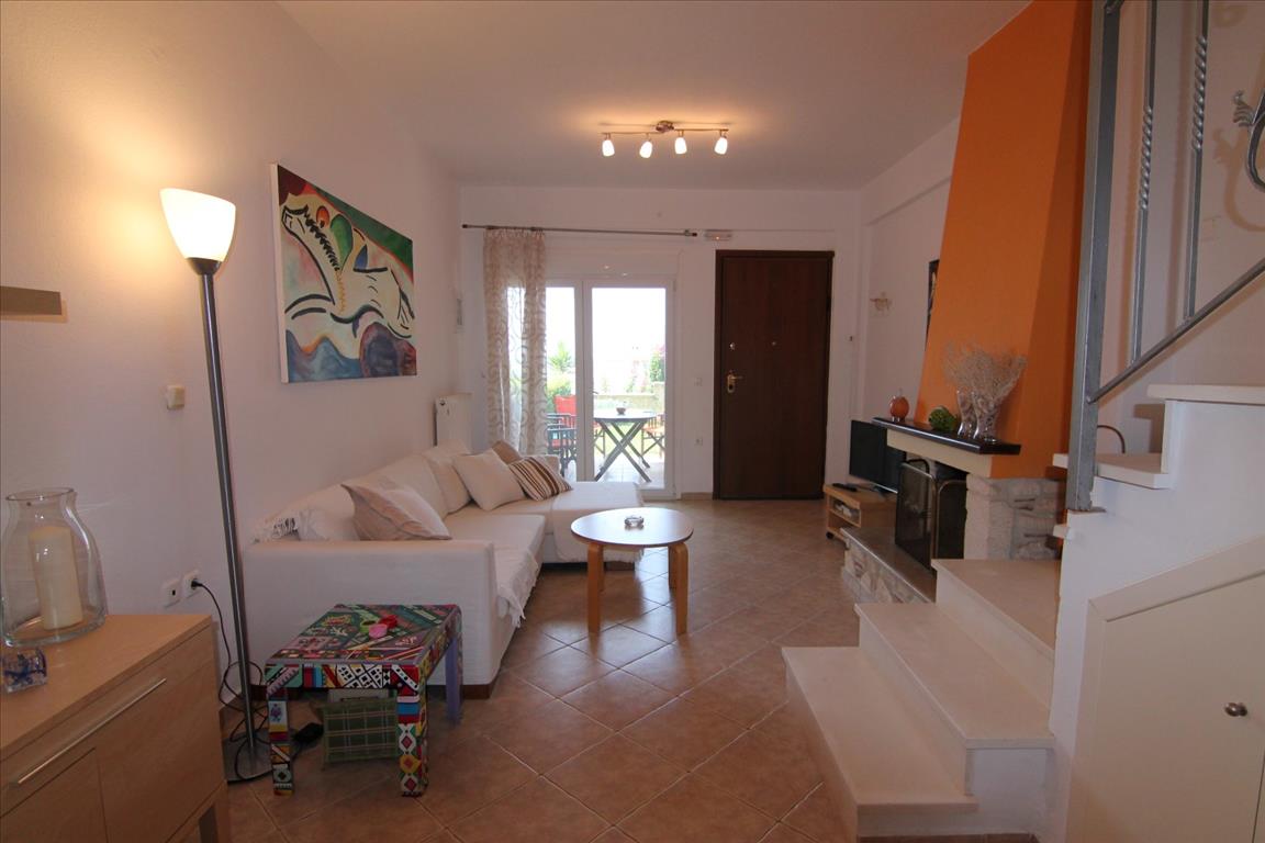 Продается таунхаус площадью 87 кв.м на полуострове Ситония, региона Халкидики. Таyнхаус расположен на 3 уровнях. Первый этаж состоит из гостиной с кухней, одного санузла. Второй этаж состоит из 2 спальных комнат, одной ванной комнаты. Третий этаж состоит из одной спальной комнаты, 2 кладовых. Из окон открывается великолепный вид на море. У объекта есть камин, кондиционер, тенты, отопление. Недвижимость продается с мебелью.