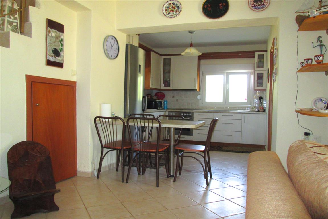 Продается таунхаус площадью 130 кв.м на полуострове Ситония, региона Халкидики. Таyнхаус расположен на 3 уровнях. Первый этаж состоит из одной спальной комнаты, гостиной с кухней, одного санузла, одной кладовой. Второй этаж состоит из 2 спальных комнат, одной душевой комнаты, одной кладовой. Третий этаж состоит из одной спальной комнаты. Из окон открывается великолепный вид на море, на горы, на лес. У объекта есть солнечные батареи для нагрева воды, кондиционер. К недвижимости относится парковочное место, сад.