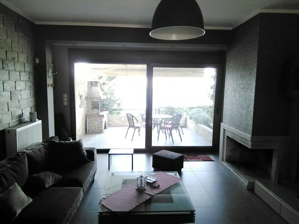 Продается таунхаус площадью 150 кв.м в пригороде города Салоники. Таyнхаус расположен на 3 уровнях. Полуподвал состоит из гостиной с кухней, гостиной, одной душевой комнаты. Первый этаж состоит из гостиной с кухней, одного санузла. Второй этаж состоит из 2 спальных комнат, одной ванной комнаты. Таунхаус имеет угловое расположение. Из окон открывается вид на море. У объекта есть камин, тенты, зона барбекю, отопление. Недвижимость продается с мебелью. У объекта установлена сигнализация. К недвижимости относится парковочное место, сад.