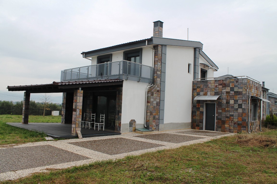 Продается 2-этажный коттедж площадью 220 кв.м в пригороде города Салоники. Первый этаж состоит из одной спальной комнаты, гостиной с кухней, одного санузла. Второй этаж состоит из 3 спальных комнат, одной ванной комнаты, одной душевой комнаты. Из окон открывается великолепный вид на горы. У объекта есть камин, зона барбекю, отопление. К недвижимости относится парковочное место. В наличии имеются четыре одинаковых коттеджа по цене 300.000 евро каждый. Цокольный этаж коттеджей оборудован под игровую комнату, а на общей, прилегающей территории можно построить быссейн.