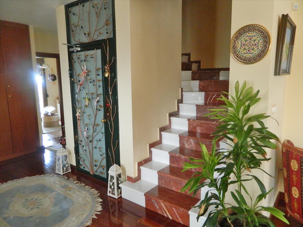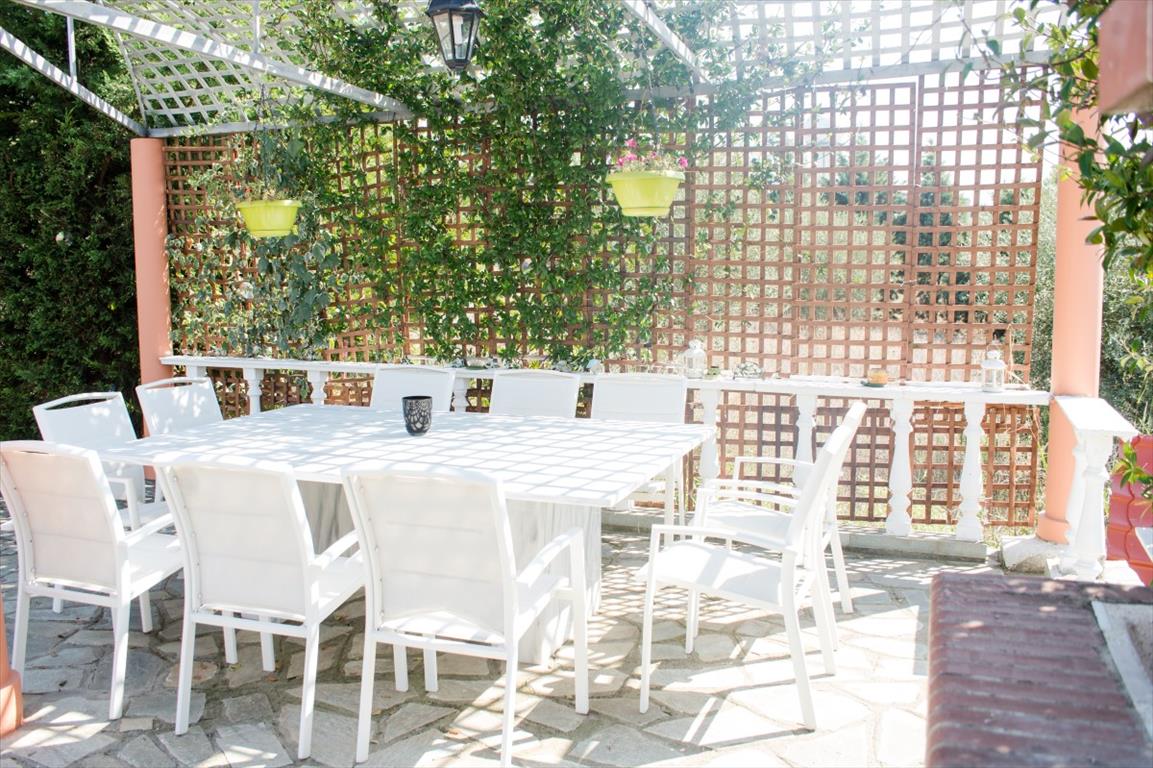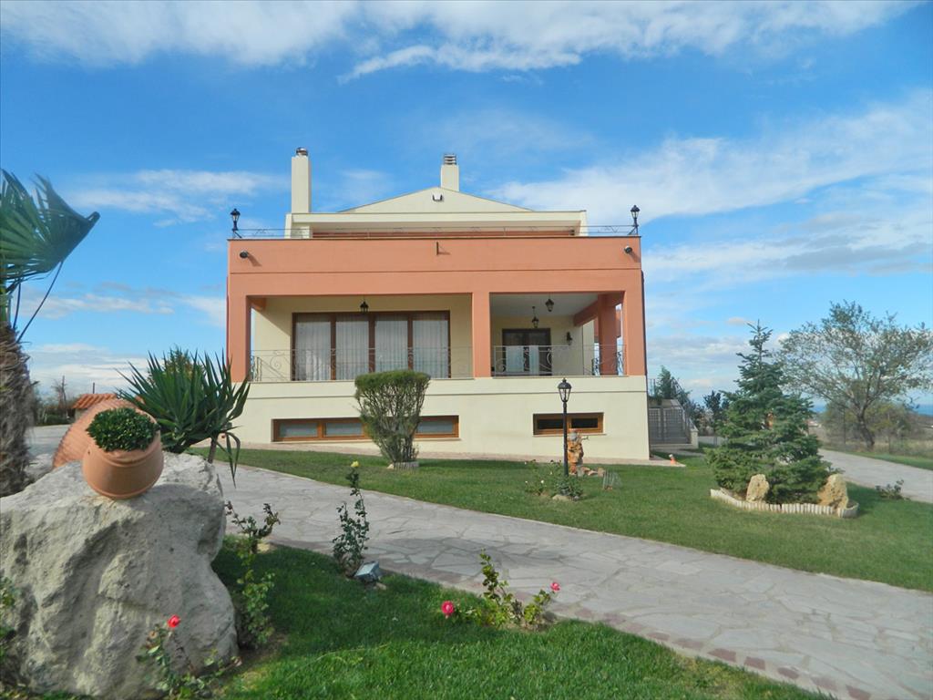 Продается прекрасная вилла в пригороде г. Салоники с очень красивым видом на Термический залив. Площадь трехэтажного дома составляет 700 кв.м. На цокольном этаже расположен тренажерный зал с сауной, игровая комната, спальная, ванная, гостиная, кухня, кладовое помещение и котельная. Первый этаж состоит из 2 гостиных, столовой зоны, кухни и ванной. На втором этаже находятся 3 спальные, каждая из которых имеет отдельную ванную (одна из ванных с джакузи). В одной спальной имеется камин. Дом полностью меблирован, установлена система отопления, 4 камина, 2 кондиционера, есть сигнализация, установлен лифт. Дом располгагает просторными верандами. На прилегающей огромной территории 8300 кв.м, засаженной газоном, установлена система автополива, есть бассейн, бар, барбекю, душ. Также на территории помимо виллы построен небольшой отдельный домик. Имеется парковочное место на 2 машины. Пригород Салоник - это идеальный выбор для тех, кто желает жить рядом с "цивилизацией", всем необходимым для полноценного проживания, избегая при этом суеты и шума большого города, но имея возможность при желании легко и быстро до него добраться. Еще одним плюсом этого региона является наличие здесь пляжей, в то время как в черте г. Салоники возможности купаться нет.