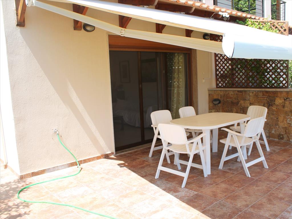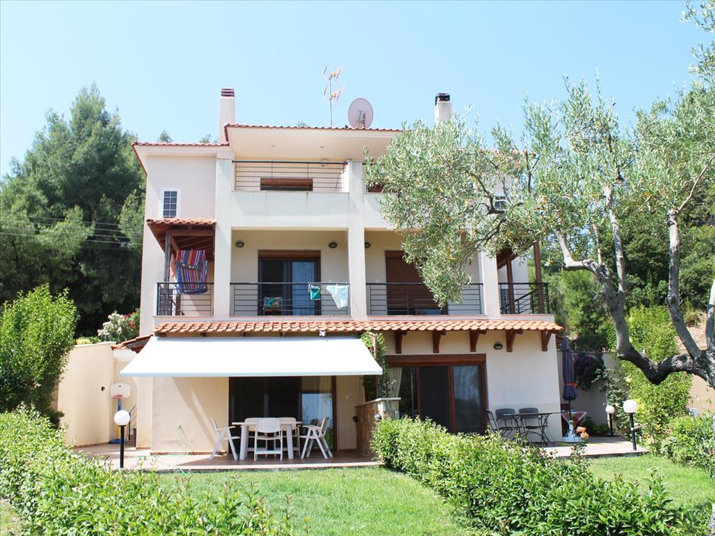 Продается трехуровневый таунхаус в живописном поселке на восточном мысе п-ове Кассандра. Первый этаж состоит из гостиной с кухней и санузла. Второй этаж включает 2 спальные и ванную комнату. На третьем этаже находится одна спальная и ванная. Дом продается вместе со всей мебелью, бытовой техникой, установлена система отопления, электрические шторы, сетки от комаров, спутниковое тв. На красивой ухоженной территории комплекса есть общий бассейн. Из дома открывается чарующий вид на залив Торонеос, сосновые рощи и второй палец п-ова Халкидики, Ситонию. В 800 метрах от комплекса расположен чистый песчаный пляж, а в километре находится туристический поселок с необходимой инфраструктурой.