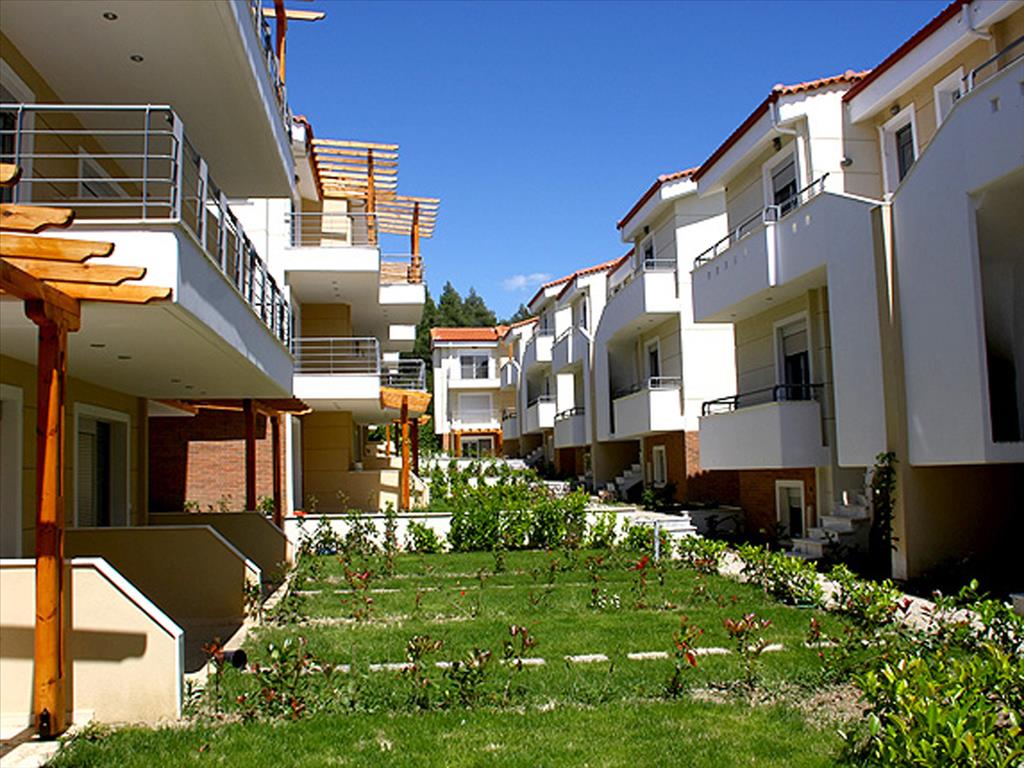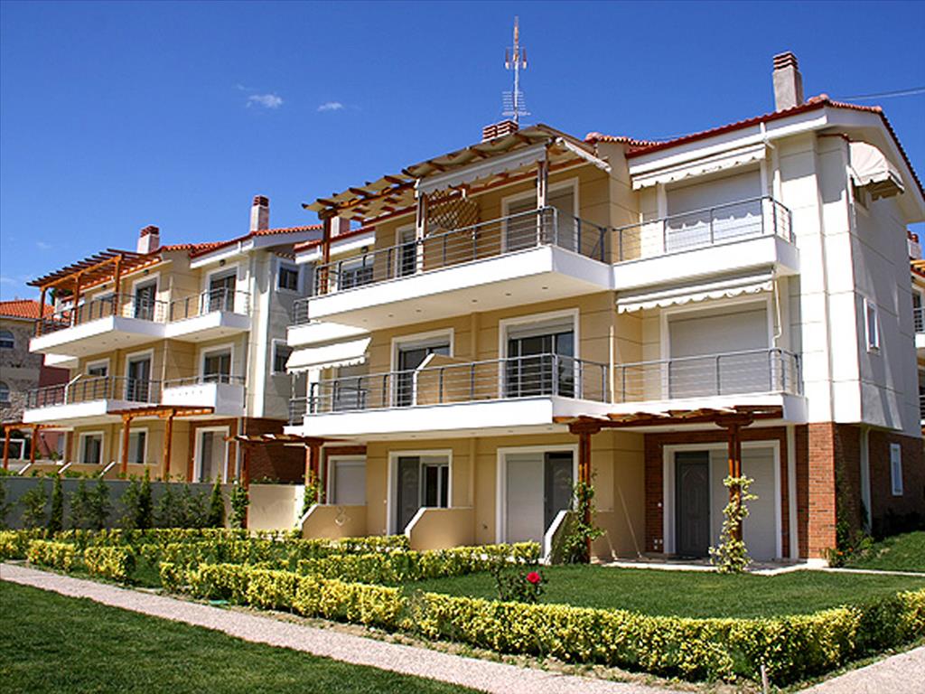 Продаются квартиры в комплексе на второй линии от моря на Кассандре. Все дома в комплексе трехэтажные, на двух нижних этажах расположены двухуровневые квартиры, на третьем - отдельная. В двухуровневых квартирах на первом этаже находятся: гостиная с камином и кухней и ванная; на втором: 2 спальные и санузел. Квартиры на третьих этажах состоят из гостиной с кухней, 2 спальных и ванной. Площади двухуровневых квартир составляют 57, 61 и 67 кв.м, цены - от 105000 до 175000 евро, в зависимости от площади и близости дома к морю. Квартиры на третьем этаже имеют площади 43, 52 и 62 кв.м, а цены на них - от 85000 до 175000 евро. В каждой квартире установлена система сигнализации, проведен интернет и спутниковое телевидение, есть кондиционеры. На территории комплекса - ухоженный газон с автоматической системой полива и подсветкой, а для каждого дома есть место парковки и небольшой собственный участок. Комплекс расположен в спокойном поселке, где горы соседствуют с уютным песчаным пляжем и набережной, а море здесь изумительной чистоты! В поселке есть вся инфраструктура, здесь много баров и таверн, где можно недорого попробовать вкусную национальную кухню и блюда из свежих морепродуктов. Поселок известен проводимым здесь ежегодным фестивалем, на котором выступают известные греческие певцы, проводятся театральные представления.