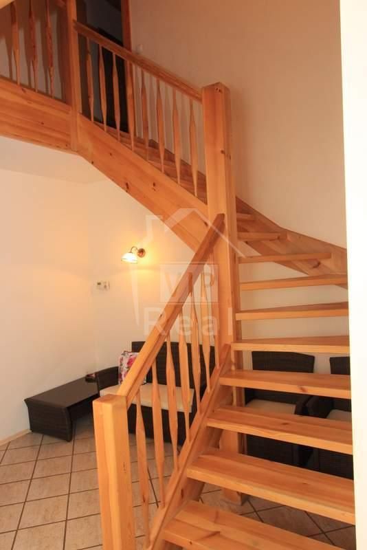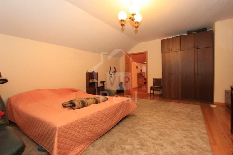 Очень удачно сделана планировка: 1- й этаж: прихожая, уютная гостиная с камином, кухня со всей встроенной мебелью и техникой, там же столовая зона, ванная комната с ванной, 2 изолированные спальные комнаты, русская парная (на дровах) с душевой, хозяйственное помещение и гараж на два автомобиля с входом в дом. 2- й этаж: 3 изолированные спальные комнаты, 3 подсобных помещения/ гардеробных и санузел с душем, выход на чердак. На обоих этажах удобные широкие коридоры. Соответственно, и сам чердак.