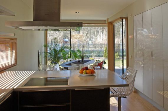 Высококачественная отделка. На первом этаже - холл, кухня со столовой, гостиная с выходом на террасу, ванная, камин, котельная и туалет. На втором этаже - спальня с гардеробной и ванной комнатой, 2 спальни, туалет, большая терраса. Коммуникации - вода, канализация - городские, отопление - газ (стоимость до 150 латов в месяц.). Земельный участок - 900 кв.м. Дом находится в 300 метрах от моря.