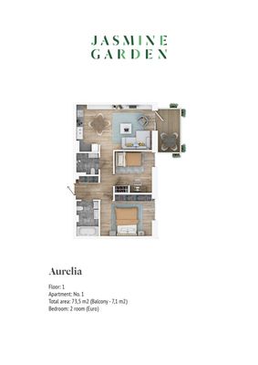 Уютная однокомнатная квартира, Яундубулты, Юрмала, Латвия
