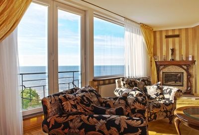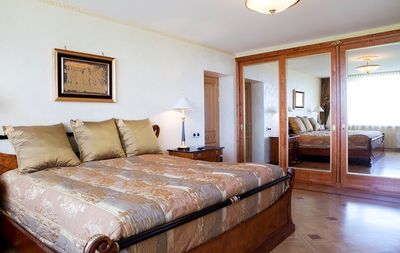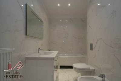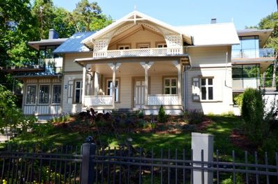 Трехэтажный дом находится в дюнной зоне, в 400 метрах от моря, рядом маленький супермаркет, поликлиника, полицейский участок, в 500 метрах - остановка общественного транспорта. Дом является памятником архитектуры, спроектирован знаменитым латышским архитектором Эйженом Лаубе, выполнен из камня в Югендстиле. В доме всего три эксклюзивные квартиры, две на втором этаже и одна на мансарде. Предлагаем апартаменты с полной отделкой на 2 этаже, площадью 310 м2. В приложенном плане видно, что в квартира состоит из: - гостиной (64 м2, высота потолков 4. 20) - Спальня хозяина - master bedroom (с гардеробной и просторной ванной комнатой) - три спальни с гардеробными - финская сауна с комнатой для массажа или спортзала - прачечная с выводами для стиральных/сушильных машин - ванная камната для гостей (ванна, душевая кабина, биде) - два гостевых туалета - кухня (современная кухня, полностью новая встроенная мебель, новая бытовая техника, два холодильника, плита, посудомоечная машина, вытяжка). Высота потолков в остальных комнатах 3. 20, деревяные стеклопакеты, пол - паркет, частично дубовая доска. Дизайн всей квартиры разработан специальной дизайнерской группой. Сантехника австрийская Laufen, первая линия. Атоматические ворота во двор, ландшафтный дизайн, постоянный садовник. Во дворе 7 гаражей, с атоматическими воротами. Дом отапливается государственным предприятием, все современные коммуникации. В квартире установлено два бойлера для подогрева горячей воды. Плата за обслуживание составляет 1 Евро/м2 в месяц. реконструированный дом, все городские коммуникации, эксклюзивная отделка в классическом стиле, встроенная кухня, ухоженная территория, ландшафтный дизайн, развитая инфраструктура, гараж на 2 машины, огороженная территория, рядом море, рядом река.