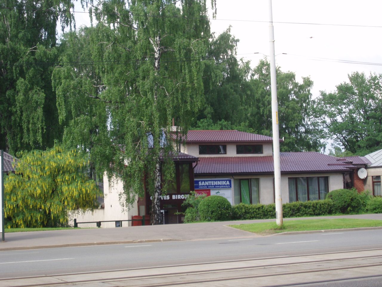Здание состоит из двух отдельных частей, одна сторона арендована под офисы, другая используется как жилой дом, но также тоже можно использовать под офисы. Отдельные входы. Очень экономичное газовое отопление в комбинации с солнечными коллекторами. Помещения в хорошем состоянии, все удобства. Автостoянки у входа. Во дворе баня.
