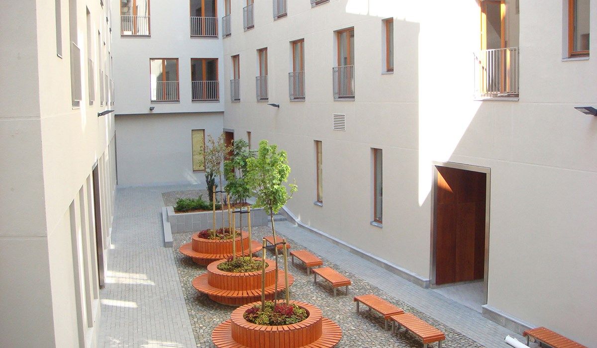 Внешние стены дома - из кирпича, стены между квартирами - керамзитные блоки с изоляцией из каменной ваты. квартирах высококачественная дубовая входная дверь с особой звукоизоляцией. В проекте имеется подземная автостоянка. Поблизости расположены и самые популярные места развлечений Старой Риги, и торговые центры, рестораны и кафе, железнодорожный вокзал, автовокзал, школа.